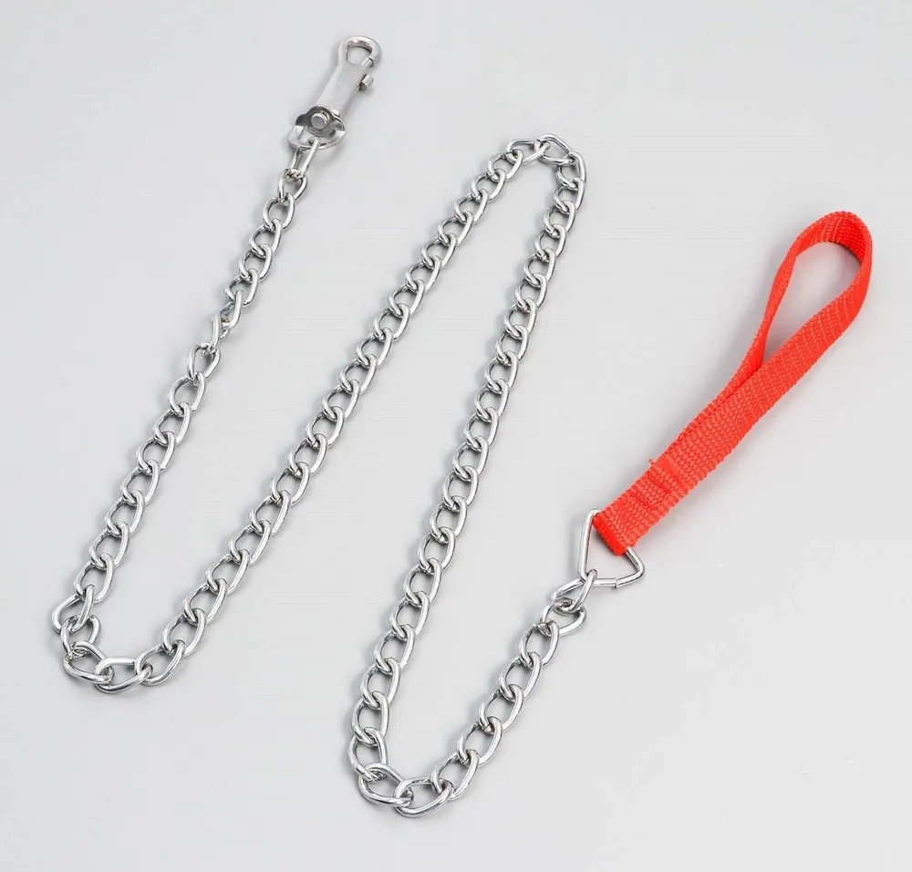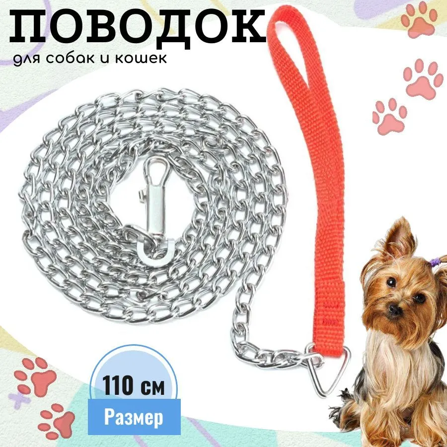 Поводок должен быть прочным и надежным. Металлический поводок полностью соответствует этим требованиям, плюс ко всему это красивый и износостойкий аксессуар. Поводок состоит из хромированной цепочки и мягкой нейлоновой ручки. Ручка прошита армированной нитью, удобно располагается в ладони и не натирает при натяжении. Поводок оснащен стальным карабином. Он идеально подходит для прогулок в парке, на улице или в лесу. Поводок легко очищается от грязи и пыли, что делает его удобным в использовании. Ручка из красного нейлона. Цинковое покрытие для долговечного использования. Поворотный зажим предотвращает скручивание .Материал: металл + нейлон. Цвет ручки: красный. Размер зажима: прибл. 6x1,4 см .Общая длина: прибл. 1,1 м.Прочный и гибкий поводок.