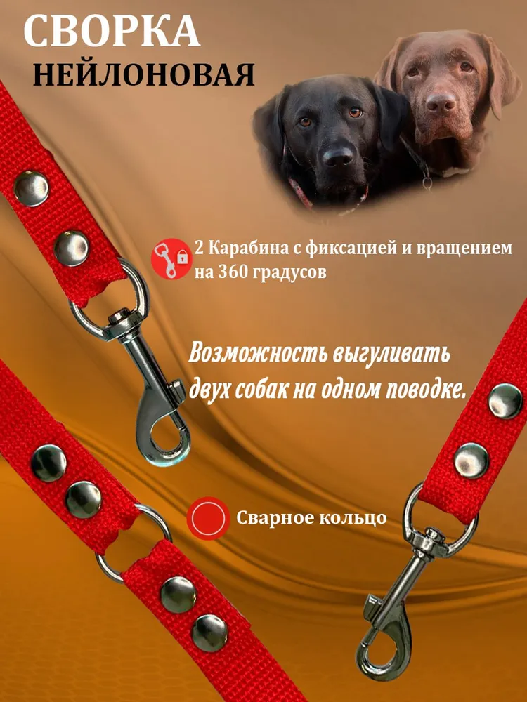 Представлена сворка для выгула двух собак одновременно. Если у вас проживает два питомца их можно выгуливать на одном поводке при помощи данной сворки. это позволит держать животных под контролем и не путаться в поводках. Практичная длина 70 сантиметров дает возможность собакам не мешать друг другу. Оснащен вращающимся карабином для предотвращения перекручивания во время прогулок. Благодаря прочной ленте и прочному механизму обеспечит надежное удержание при больших нагрузках, что исключает срыв собаки с поводка. Идеальный выбор для активных собак и заботливых владельцах. Приобретайте наши сворки и поводки и выгул ваших питомцев будет еще удобнее и практичнее.