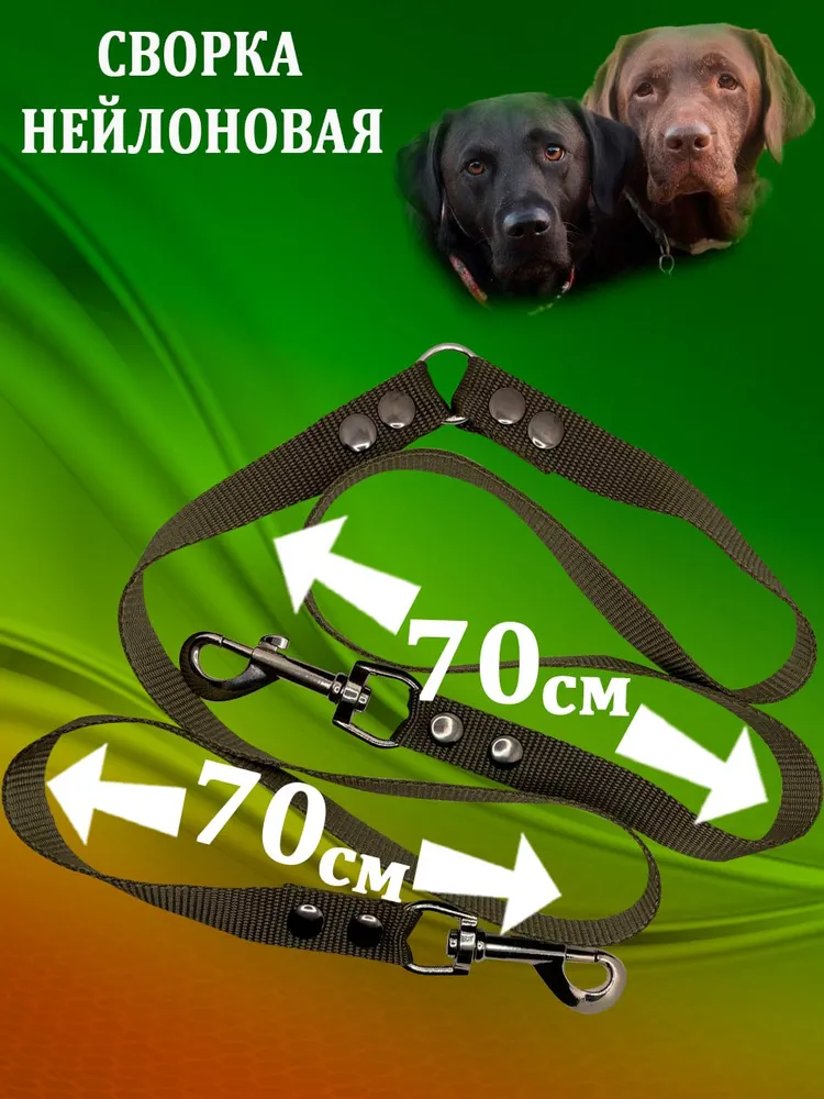 Представлена сворка для выгула двух собак одновременно. Если у вас проживает два питомца их можно выгуливать на одном поводке при помощи данной сворки. это позволит держать животных под контролем и не путаться в поводках. Практичная длина 70 сантиметров дает возможность собакам не мешать друг другу. Оснащен вращающимся карабином для предотвращения перекручивания во время прогулок. Благодаря прочной ленте и прочному механизму обеспечит надежное удержание при больших нагрузках, что исключает срыв собаки с поводка. Идеальный выбор для активных собак и заботливых владельцах. Приобретайте наши сворки и поводки и выгул ваших питомцев будет еще удобнее и практичнее.
