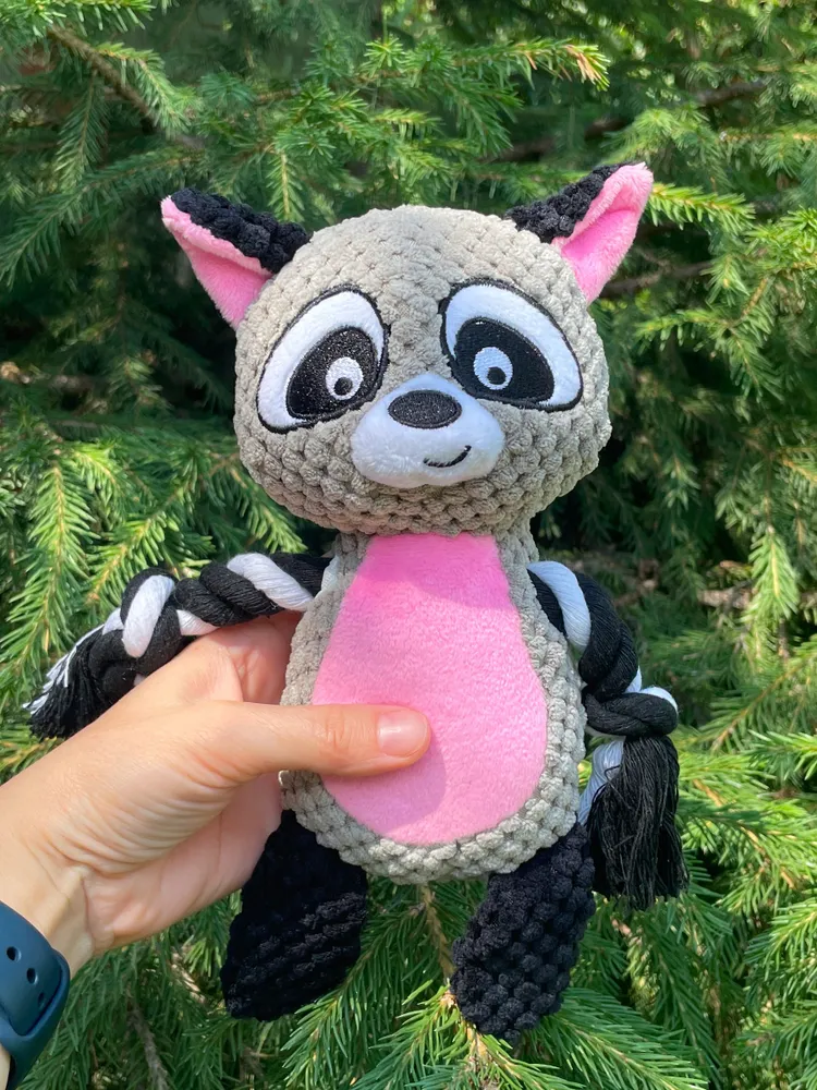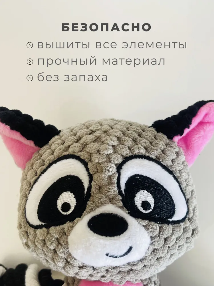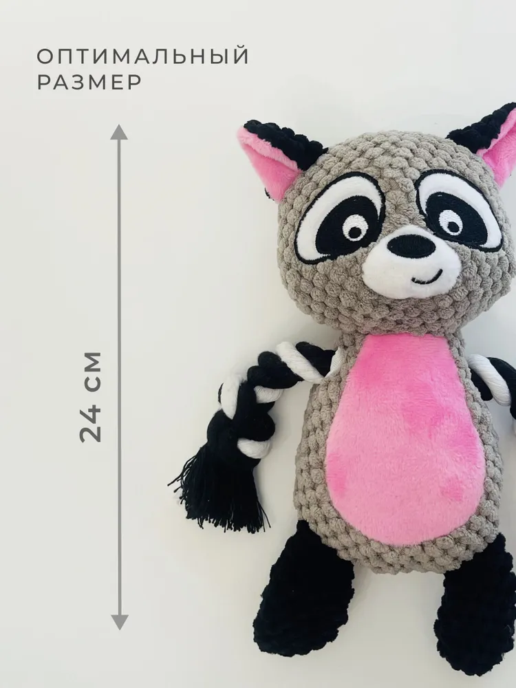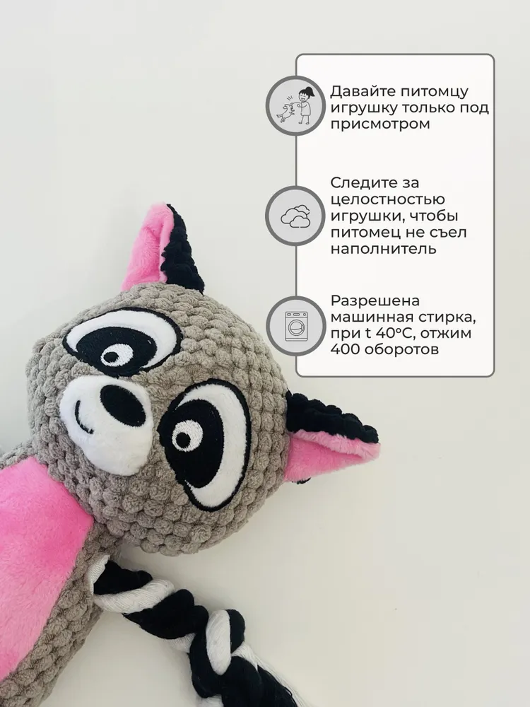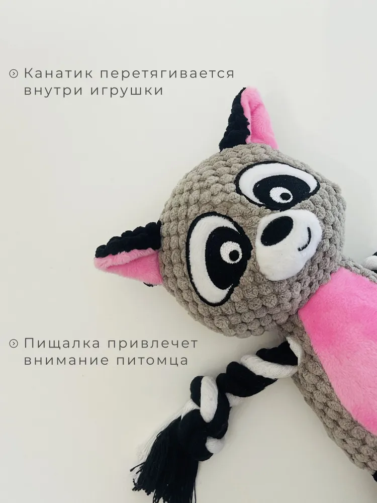 Енот - мягкая игрушка для собак с канатиками. Мягкий на ощупь прочный материал и продуманный дизайн создают комфорт во время игры, а интересный внешний вид привлечет внимание вашего питомца.Енотик прекрасно подходит для игры в тянущие соревнования, что делает его отличной игрушкой-канатиком. Канат для собак способствует укреплению челюстных мышц и улучшению зубной гигиены благодаря комбинации игры и жевательных процессов.Эта игрушка подойдёт для собак и щенков всех пород, включая мелких, и станет великолепным способом провести время и активизировать физическую активность.Канатик перетягивается внутри игрушки.А еще у Енота внутри веселая пищалка и шуршащие лапки, что не оставит равнодушным ни одного питомца. Игрушки для собак избавят вашего питомца от скуки.Срок службы игрушки зависит от интенсивности игры и темперамента вашего питомца. Если ваша собака склонна к разгрызанию текстильной игрушки, то не оставляйте ее наедине с ней, для избежания проглатывания наполнителя.Подарите своему четвероногому другу массу положительных эмоций с забавным Енотиком!