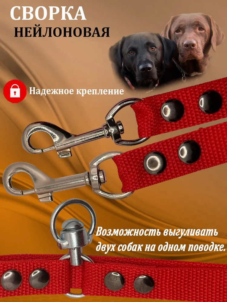 Представлена сворка для выгула двух собак одновременно. Если у вас проживает два питомца их можно выгуливать на одном поводке при помощи данной сворки. это позволит держать животных под контролем и не путаться в поводках. Практичная длина 70 сантиметров дает возможность собакам не мешать друг другу. Оснащен вращающимся карабином из оцинкованной стали для предотвращения перекручивания во время прогулок. Благодаря прочной ленте и прочному механизму обеспечит надежное удержание при больших нагрузках, что исключает срыв собаки с поводка. Идеальный выбор для активных собак и заботливых владельцах. Приобретайте наши сворки и поводки и выгул ваших питомцев будет еще удобнее и практичнее.