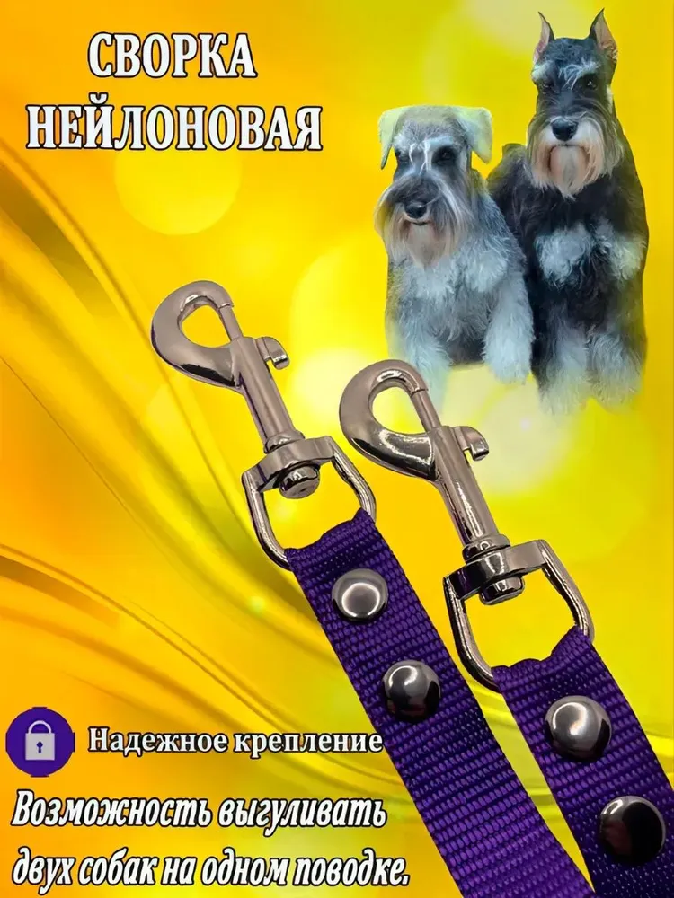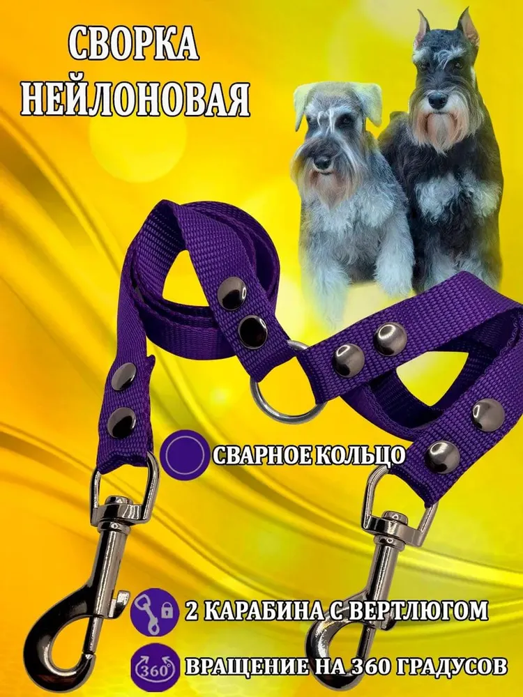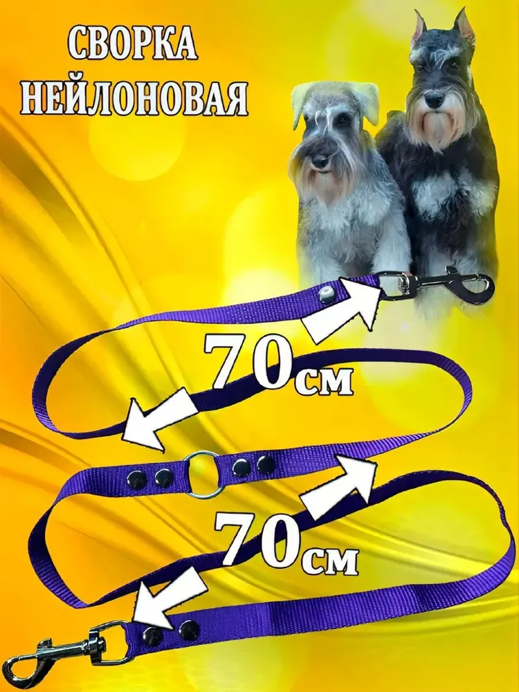 Представлена сворка для выгула двух собак одновременно. Если у вас проживает два питомца их можно выгуливать на одном поводке при помощи данной сворки. это позволит держать животных под контролем и не путаться в поводках. Практичная длина 70 сантиметров дает возможность собакам не мешать друг другу. Оснащен вращающимся карабином для предотвращения перекручивания во время прогулок. Благодаря прочной ленте и прочному механизму обеспечит надежное удержание при больших нагрузках, что исключает срыв собаки с поводка. Идеальный выбор для активных собак и заботливых владельцах. Приобретайте наши сворки и поводки и выгул ваших питомцев будет еще удобнее и практичнее.