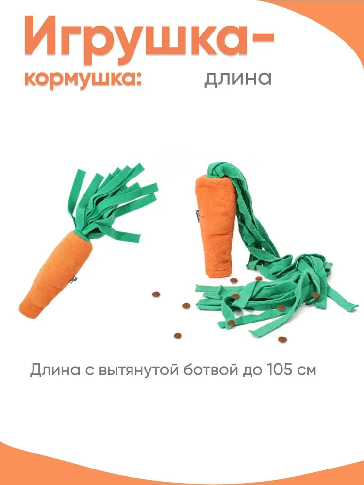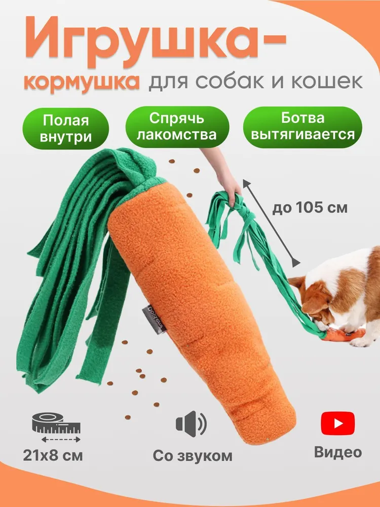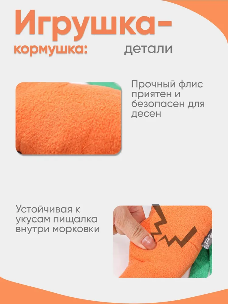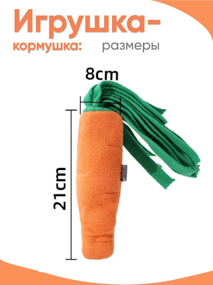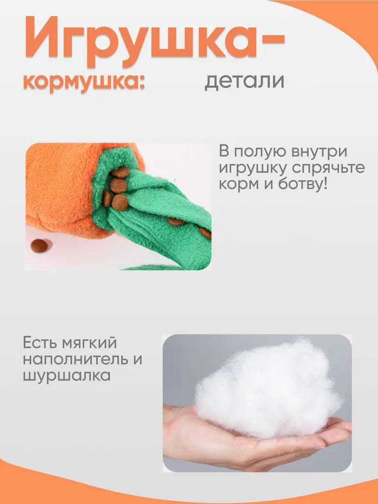 Мягкая игрушка-кормушка для собак и кошек Морковка с полостью внутри и пищалкой