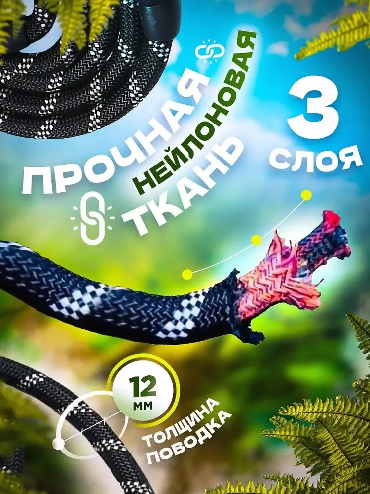 Нейлоновый поводок для собак светоотражающий 3 м, чёрный
