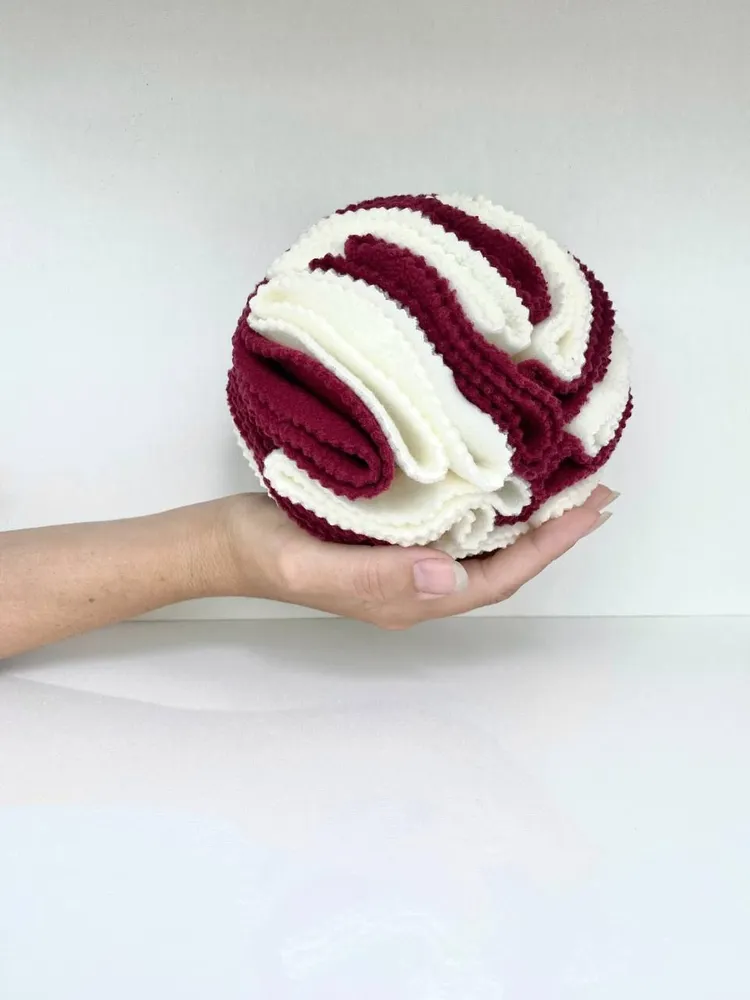 Нюхательная игрушка мячик направлен развлекать и развивать логику питомца. Диаметр шара 15 сантиметров (см). В складки шара закладываются кусочки любимого лакомства или корма, которые собака должна найти. Такой нюхательный мяч продлит время кормления животного. Игрушка отлично подходит для игр, дрессировки любимого питомца. Игры с мячом развивают нюх и мышление, улучшает концентрацию внимания, снижается стресс и тревожность. Мяч содержит большое количество слоев, что способствует увлекательному времяпрепровождению. Важное в использовании: хозяину нужно контролировать процесс игры, не давать собаке брать шар в пасть или трепать его и не допускать любого агрессивного воздействия на игрушку. Не является антивандальной. Перед началом использования расправьте все складки ткани для увеличения объема мячика. Для первого раза выбирайте очень вкусное и самое любимое лакомство и кладите его на поверхность складок. Чтобы показать принцип игры. Шар как головоломка развивает нюхательный навык собаки. Так же собаке приходится соображать и думать, у нее расходуется энергия. Та лишняя, которая идет на разрушение вашего дома, особенно если собака щенок или молодая. По нагрузке на мозг 15 минут игры в шар равняется 45 минутам прогулки на улице. Такие товары для животных вы с удовольствием можете использовать как дома так и на даче, в дороге, дальней поездке. Они отлично подойдут и будут удобны в применении для собак мелких пород, средних пород, крупных пород. Зачем собакам вообще нужны игрушки? Нюхательные шары, нюхательный коврик, лизательный коврик и другие игрушки для питомцев способствуют физическому и умственному развитию животных. Их можно использовать в процессе активных игр на природе при выгуле пса. Существует много вариантов для игр с собакой и игрушками.