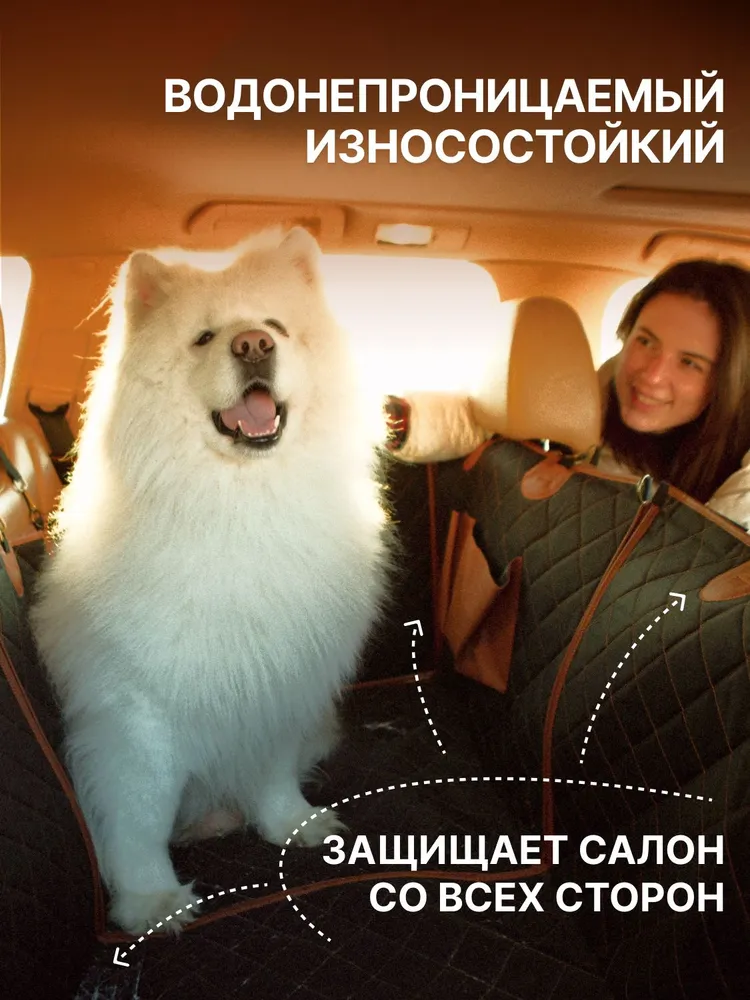 Чехол в машину для собак состоит из шести слоев материала, один из которых — ткань Оксфорд 600D. Она полностью водонепроницаема, поэтому слюна и мокрые лапы не оставят на сиденьях ни следа.Подходит для транспортировки любых пород