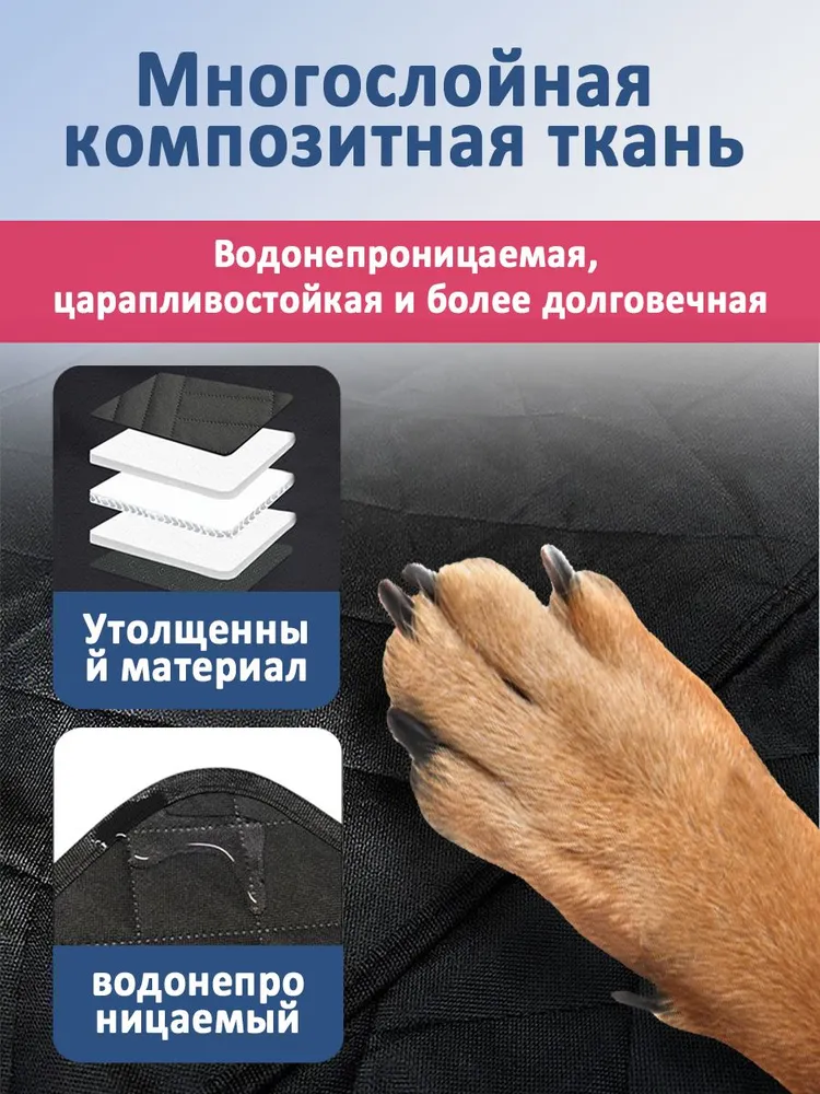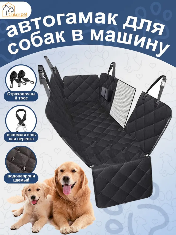 Автогамак для перевозки животных с защитой 360, водонепроницаемый гамак в авто,147X137CM,черный