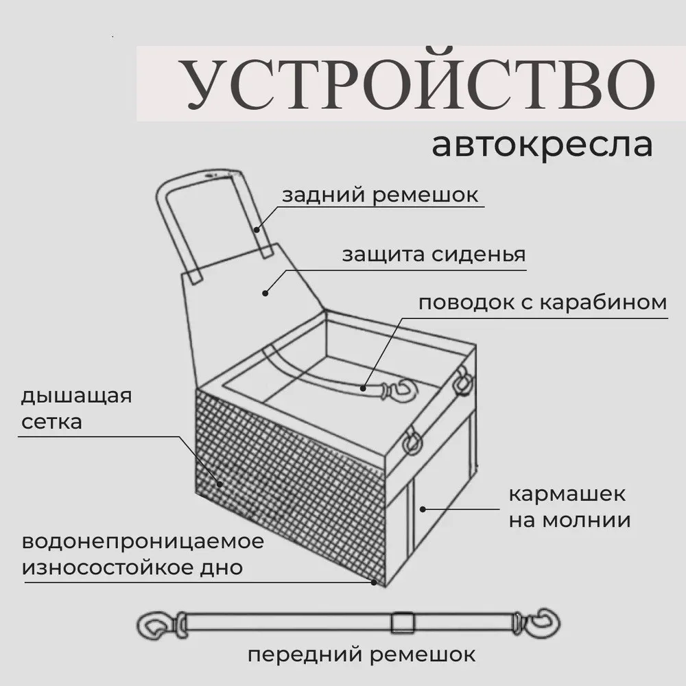 Обеспечьте комфортное путешествие себе и своему питомцу. Благодаря автогамаку вы забудете о проблемах, которые иногда возникают при транспортировке животных в машине. Даже если ваш любимец хорошо переносит дорогу, в гамаке поездка для него будет еще приятнее.Гамак легко устанавливается на автомобильное кресло, конструкция имеет размеры 42 см в ширину, 37 см в глубину, 22 см в высоту и подходит для перевозки котов и котят, щенков, мелких и средних пород собак: от шпицев до бульдогов.Благодаря гамаку, выполняющему функцию накидки, вы защитите машину от шерсти и грязи, которая может сыпаться с лап вашего подопечного. Бокс, похожий по форме на коробку, которые так обожают представители семейства кошачьих, достаточно просторен и открыт, поэтому не пугает животных, в отличие от того, как это часто бывает с переноской. Однако за счет поводка, который входит в набор и служит фиксатором, питомец надежно закреплен, никуда не убежит и не травмируется в дороге. Поводок можно отрегулировать так, чтобы создать максимально удобные условия для домашнего животного. Бортики конструкции достаточно жесткие, поэтому держат форму и не сминаются. В машине гамак устанавливается на переднее или заднее сидение и закрепляется при помощи лямок и фастексов за автомобильный подголовник.Изделие изготовлено из нейлонового материала с водонепроницаемой пропиткой, что гарантирует высокую степень износостойкости и долгий срок эксплуатации. На передней части изделия расположен карман, закрывающийся на молнию, куда можно сложить различные аксессуары. Изделие в сложенном виде очень компактно, легко помещается в багажник. Уход предполагает ручную стирку, сушку необходимо осуществлять в вертикальном положении.Запрещено использовать отбеливать и сушить в машине барабанного типа.Использование автогамака – это чистота в салоне, спокойствие хозяев и комфорт для животных.