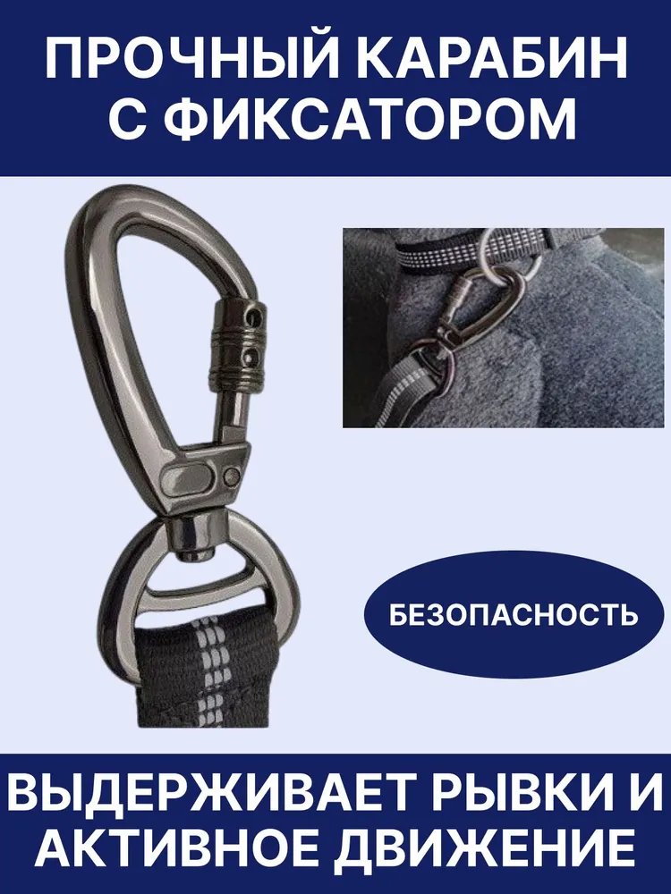 Безопасность питомца в автомобиле — важный элемент каждой поездки. Ремень безопасности для собак в машину с усиленным карабином — надёжное решение для защиты вашего четвероногого друга во время движения. Он помогает предотвратить опасные перемещения животного по салону, снижает риск травм и не мешает водителю сосредоточиться на дороге.Карабин ремня усилен, оснащён поворотным механизмом и защёлкой с фиксацией — он выдерживает даже резкие рывки активных и крупных собак. Регулируемая длина от 54 до 90 см позволяет использовать аксессуар для мелких пород, щенков, а также средних и крупных собак. Благодаря креплению в стандартный замок ремня или в ISOFIX, ремень совместим практически с любым автомобилем — легковым, внедорожником или даже микроавтобусом.Изготовленный из прочного и мягкого нейлона, ремень не натирает шерсть, не скользит и не вызывает дискомфорта. Он надёжен и удобен в использовании — собака может сидеть, лежать или даже поворачиваться в пределах допустимого радиуса. Особенно хорошо ремень работает в сочетании с автогамаком для собак, автокреслом для мелких пород или чехлом в машину для собак — создавая полноценное защищённое пространство.Как пользоваться:Зафиксируйте карабин на шлейке или ошейнике.Второй конец ремня вставьте в стандартный замок ремня безопасности или крепление ISOFIX.Отрегулируйте длину так, чтобы питомцу было удобно, но безопасно.Выбирая этот ремень, вы получаете не просто аксессуар, а необходимый элемент заботы о здоровье и спокойствии вашего питомца в дороге. Он подойдёт для повседневных поездок, дальних путешествий и любых условий.