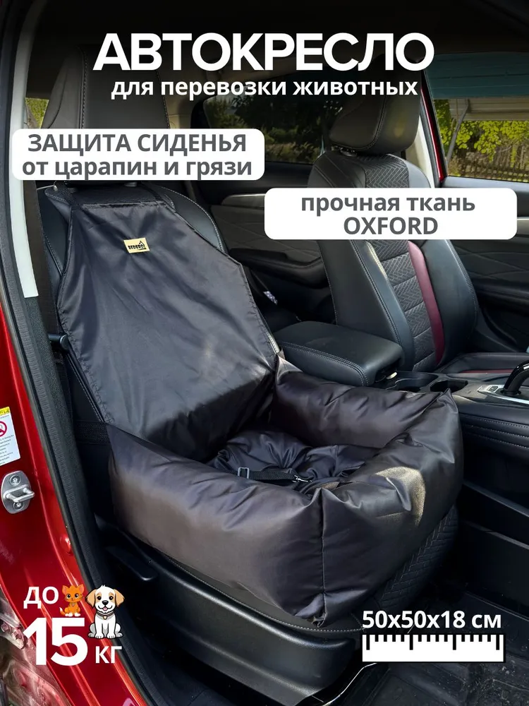 Автокресло для собак и кошек в машину BEDBRO до 15 кг цвет Черный материал Оксфорд 50*50 см