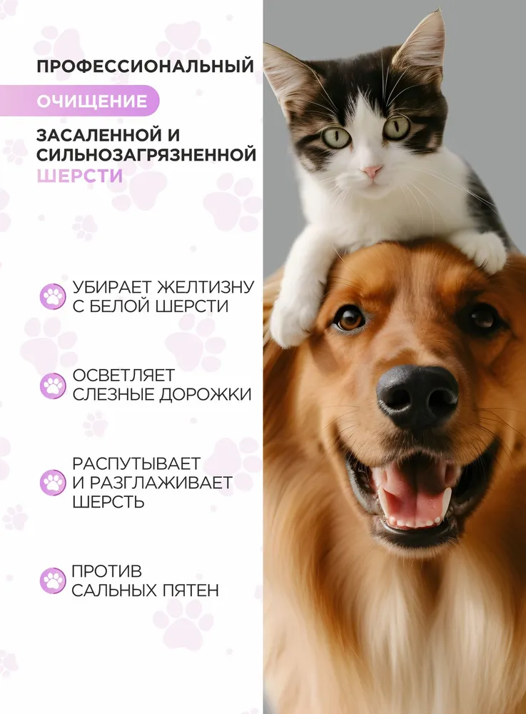 Станьте профессиональным грумером и стилистом для любимого питомца вместе с органической серией по уходу за собаками и кошками LOVE CAT LOVE DOG.Паста для сильно загрязненных шерсти и кожи собак и кошек предназначена для особо стойких загрязнений, с которыми не может справиться обычный шампунь. Средство удаляет сальные пятна, распутывает и разглаживает шерсть, убирает с неё желтизну на проблемных участках: в зоне хвоста, за ушами, на месте слезных дорожек. Работает против неприятного запаха. Сохраняет естественный pH баланс, не пересушивая кожу и шерсть животного.Паста для собак и кошек безопасна для щенков и котят, а также взрослых питомцев чувствительных пород. Натуральные компоненты не сушат кожу: можно использовать пасту так часто, как это необходимо. Мы разработали пасту для сильно загрязненной шерсти, а также другие уникальные средства ухода за животными с учетом опыта профессиональных грумеров и заводчиков.Органический состав пасты заботится не только о шерсти, но и не повреждает кожу ваших рук, в отличие от обычных синтетических средств. Мы за безопасное и приятное купание для всех участников!Супер очищающая обезжиривающая паста используется на первом этапе глубокой очистки сильно загрязненной шерсти животного самостоятельно или в комплексе с очищающим гелем для восстановления окраса шерсти.Гидролизованные протеины пшеницы в составе пасты используются в качестве кондиционирующей, придающей блеск и защищающей волос добавки.Гель алоэ вера способствует регенерации, успокаивает кожу, снимает воспаления, увлажняет.Глицерин способствует лучшему проникновению влаги, повышает очищающие способности средства, по увлажняющим свойством уступает лишь гиалуроновой кислоте.Экстракт зверобоя обладает антимикробным, дезинфицирующим, регенерирующим и противовоспалительным свойствами.Даже если ваш любимый хвостик долгое время обходился без ухода, комплекс средств по уходу за собаками и кошками LOVE CAT LOVE DOG поможет выглядеть так, как будто он побывал в дорогом груминг-салоне. Здоровые, ухоженные на профессиональном уровне шерсть и кожа четвероногого друга - без лишних трат и поездок. И всё это в привычных домашних условиях, никаких переживаний и стресса!Рекомендации по уходу:Обработайте засаленные, жирные, сильно загрязненные участки шерсти Пастой для сильно загрязненных шерсти и кожи. Обратите пристальное внимание на пробор хвоста, зону за ушами, под глазами животного.Пока паста растворяет загрязнения, распределите Гель-пасту для обновления цвета и структуры волоса по всей шерсти. Хорошо помассируйте.Смойте пасту и гель с шерсти. Нанесите подходящий Шампунь для собак и кошек или Шампунь-концентрат из нашей линейки: для Глубокого очищения, для Деликатного очищения, для Шикарного объема, для Особого блеска, для Жесткой шерсти.Помассируйте всё тело животного. Рекомендуем сначала вспенить шампунь губкой. Тщательно промойте шерсть.Завершите уход кондиционером или маской, в зависимости от потребностей шерсти вашего питомца.Усилит полученный результат Спрей-сыворотка.Мы гарантируем:растительные, натуральные ароматы наших продуктов нейтрализует неприятный запах шерсти;оптимальный именно для вас объем от 100 мл до 10 л для домашнего и профессионального использования;экономичный расход каждого средства. Например, горошин