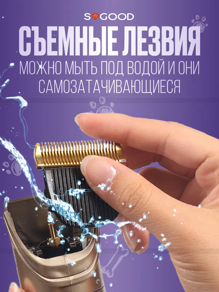 Низкий урoвень шума.СНЯТИЕ ЛЕЗВИЙ:1. Установите регулятор уровня среза на 2,0мм.2. Слегка нажмите на режущий блок верхней части ножей до щелчка.3. Выньте полностью режущий блок.4. Пройдитесь по ножевому блоку и корпусу кисточкой для чистки, которая есть в комплекте к устройству. При необходимости промойте блок в проточной воде.5. Обработайте лезвия специальным маслом, чтобы они дольше не изнашивались, не перегревались, имели плавный ход. Такую обработку проводите перед первым использованием, а затем после каждых нескольких сеансов.УСТАНОВКА ЛЕЗВИЙ:1. Установите режущий блок в пазы корпуса.2. Зафиксируйте до щелчка.3. Убедитесь, что лезвия установлены надежно и не выпадают