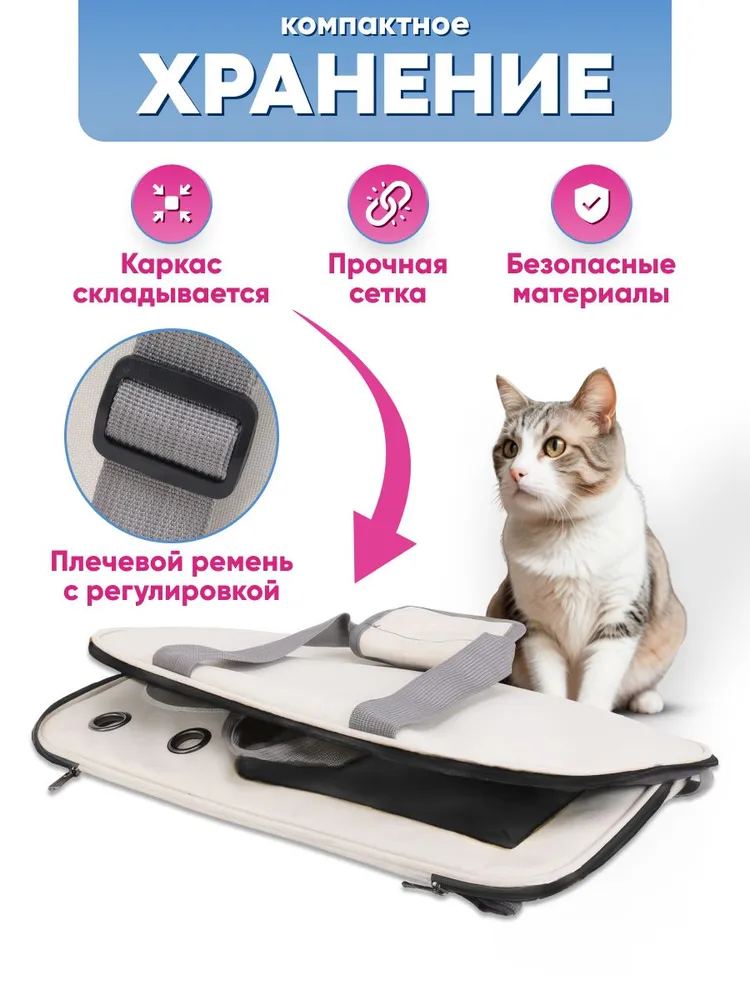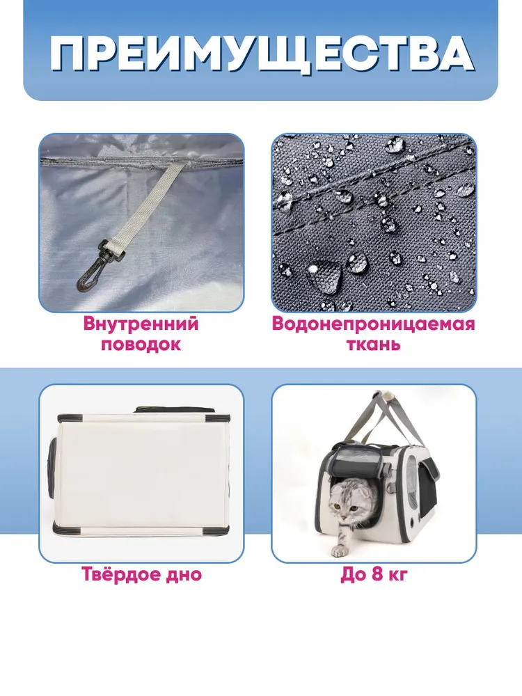 Сумка переноска для животных мягкая, легкая и подходит для домашних питомцев весом до 8 кг, будь то котенок, щенок, кот или для собак мелких пород. Благодаря твердому дну и водонепроницаемой ткани, ваш питомец будет чувствовать себя комфортно в любых условиях. Сумка переноска для кошек и собак с ручкой, а также с регулируемым ремнем дает возможность носить переноску через плечо и делает ее идеальным выбором для поездок на машине или самолете. Также она оснащена прочными молниями и окнами из сетки со всех сторон, что обеспечивает хорошую циркуляцию воздуха во время путешествия. Наша сумка переноска через плечо для кошек станет отличным подарком на 14 февраля, 23 февраля, 8 марта и другие праздники.