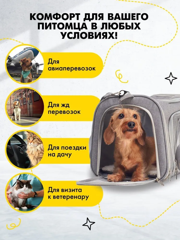 Переноска для кошек и собак мелких пород - идеальное решение для безопасной и комфортной транспортировки вашего питомца. Эта сумка переноска обеспечивает максимум удобства как для животных, так и для их владельцев. Изготовленная из качественных, долговечных материалов, она легко очищается и сохраняет свою форму даже при частом использовании.Переноска подходит для перевозки как кошек, так и маленьких собак, что делает ее универсальной и практичной. Она снабжена вентиляционными окнами, что позволяет вашему любимцу чувствовать себя комфортно и не испытывать стресс во время поездки. Удобные ручки и плечевой ремень обеспечивают легкую транспортировку, а система крепления гарантирует надежную фиксацию сумки в автомобиле.Внутри переноска также имеет мягкую подстилку, что делает ее еще более уютной для вашего питомца. Кроме того, благодаря компактному дизайну, вы сможете легко разместить ее в автомобиле или взять с собой в путешествие. Не забывайте, что такая переноска - это не только практичное решение, но и стильный аксессуар, который подчеркнет вашу заботу о питомце.Выбирая эту сумку переноску для животных, вы получаете надежный и безопасный способ транспортировки. Прекрасно подходящая для поездок к ветеринару, на прогулки или в поездки в отпуск, эта переноска станет незаменимым помощником в жизни владельца домашних животных. Позаботьтесь о комфорте и безопасности вашего питомца - выберите переноску, которая сочетает в себе отличное качество и стильный дизайн.