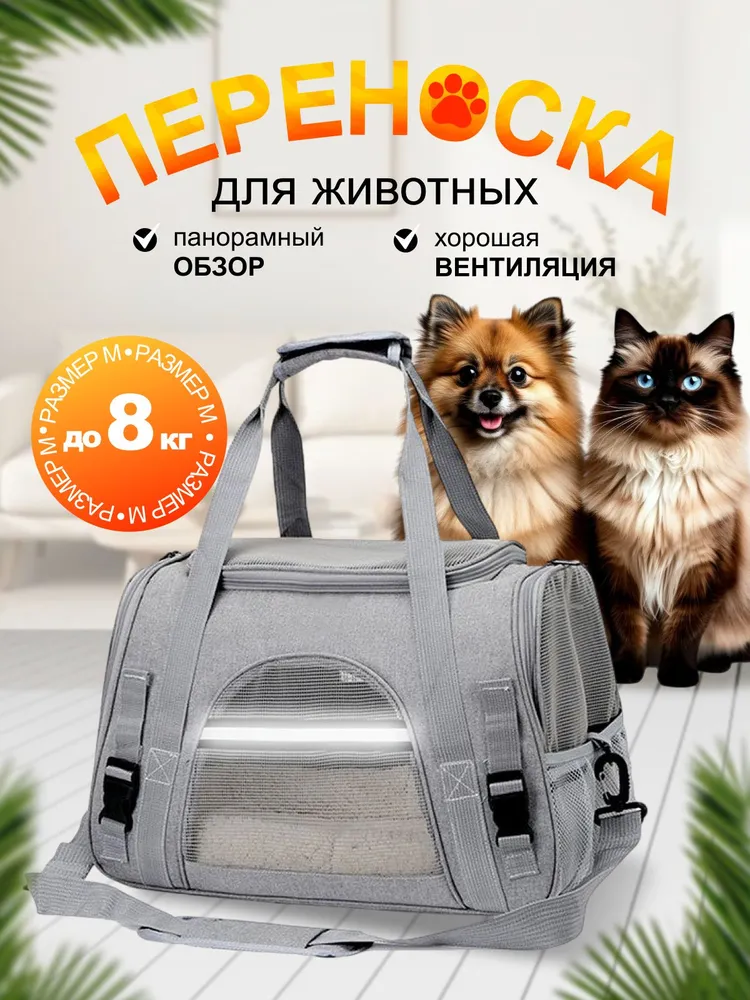 Переноска для кошек и собак – это идеальный аксессуар для комфортной перевозки ваших питомцев и мелких грызунов. Эта сумка обеспечивает надежную защиту и уют для ваших любимцев во время путешествий, походов к ветеринару или просто прогулок по городу. Разработанная с учетом потребностей животных, она сочетает в себе функциональность и стильный дизайн.Материалы, из которых изготовлена переноска, отличаются прочностью и долговечностью, что гарантирует долгий срок службы. Внутреннее пространство максимально удобно для питомцев: в сумке предусмотрены мягкие элементы, которые делают ее комфортной для сна или отдыха. Закрывающиеся вентиляционные окна обеспечивают хороший поток воздуха, что важно для создания оптимального микроклимата внутри.Переноска легка и компактна, что делает ее удобной для транспортировки. Благодаря современным застежкам сумку легко открывать и закрывать, а также можно быстро и просто зафиксировать переноску в автомобиле. Ручки имеют удобную форму, что обеспечивает комфорт при переноске. Многие модели также оснащены дополнительными карманами для хранения личных вещей вашего питомца, таких как лакомства или игрушки.Эта сумка будет отличным выбором для владельцев, которые заботятся о комфорте и безопасности своих любимцев. Сумка подходит как для путешествий, так и для повседневного использования.