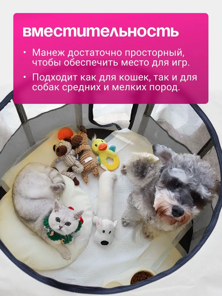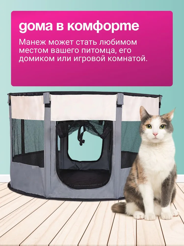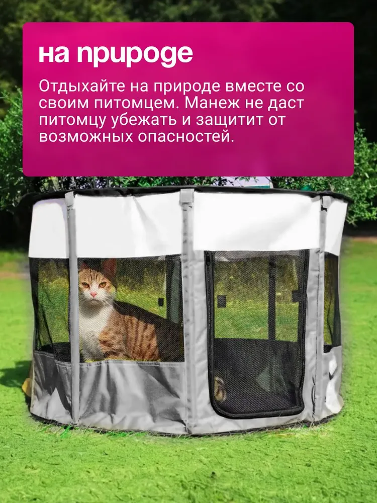 ★ БЕЗОПАСНОСТЬ И НАДЕЖНОСТЬ. Держите вашего питомца в удобном и безопасном манеже для домашних животных. Оснащен закрепленым ковриком для обеспечения безопасности вашего питомца. Достаточно просторный, чтобы обеспечить вашему питомцу место для игр.★ Изготовлен из прочных водостойких материалов. Верх на молнии можно легко снять для использования в помещении, или закрыть для использования на открытом воздухе, чтобы обеспечить тень или защиту от дождя. Дверца на молнии обеспечивает легкий вход / выход для вашего питомца. При необходимости дверцу можно закрыть снаружи, чтобы питомец не потерялся.★ ПОРТАТИВНЫЙ И ЛЕГКИЙ. Отлично подходит для использования внутри помещения или при выезде на природу. Легкий, но прочный делает его идеальным для путешествий, кемпинга и переезда. Поставляется с удобным чехлом.★ Обеспечивайте сохранность ваших питомцев как в помещении, так и на открытом воздухе. Устанавливается за считанные секунды и не требует сборки; складывается обратно, когда не используется, для удобства перевозки и хранения. оснащен застежкой-молнией сверху для легкого доступа, а также передней дверцей на молнии, чтобы ваш питомец мог входить и выходить.Отлично подходит для использования в помещении, на открытом воздухе, путешествий, кемпинга и многого другого!