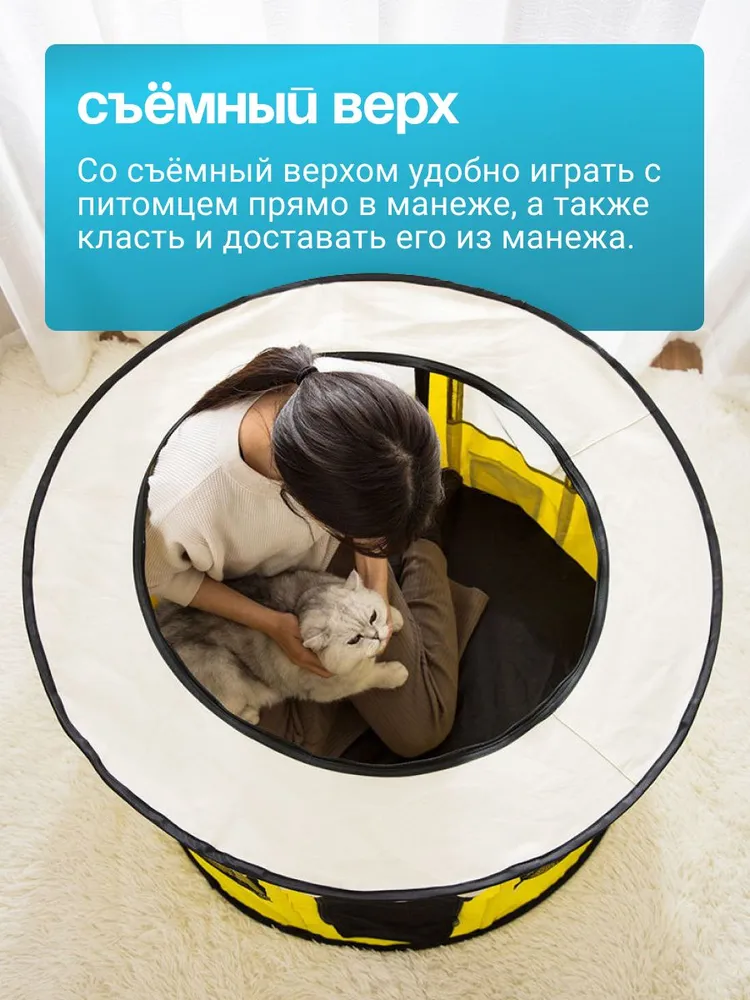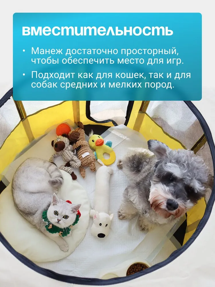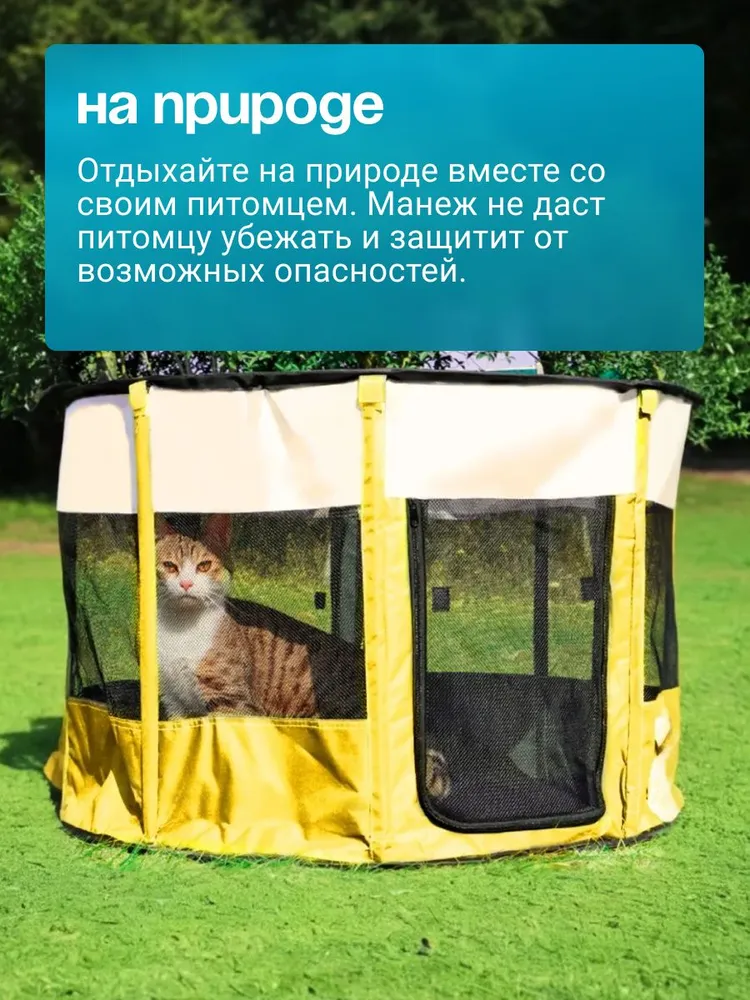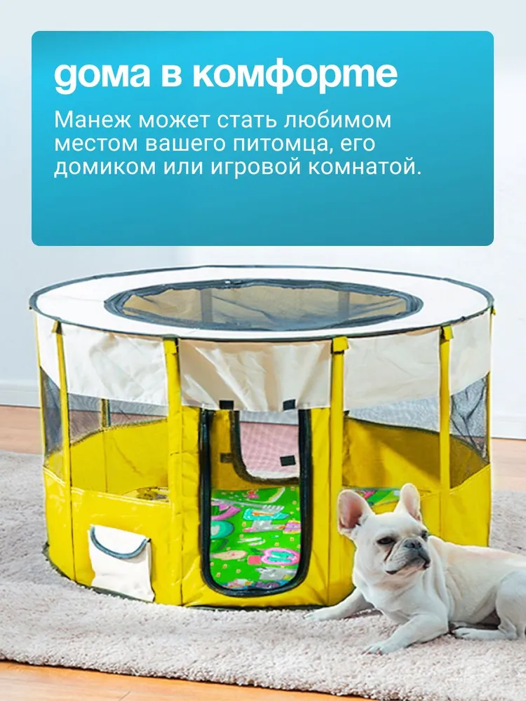 ★ БЕЗОПАСНОСТЬ И НАДЕЖНОСТЬ. Держите вашего питомца в удобном и безопасном манеже для домашних животных. Оснащен закрепленым ковриком для обеспечения безопасности вашего питомца. Достаточно просторный, чтобы обеспечить вашему питомцу место для игр.★ Изготовлен из прочных водостойких материалов. Верх на молнии можно легко снять для использования в помещении, или закрыть для использования на открытом воздухе, чтобы обеспечить тень или защиту от дождя. Дверца на молнии обеспечивает легкий вход / выход для вашего питомца. При необходимости дверцу можно закрыть снаружи, чтобы питомец не потерялся.★ ПОРТАТИВНЫЙ И ЛЕГКИЙ. Отлично подходит для использования внутри помещения или при выезде на природу. Легкий, но прочный делает его идеальным для путешествий, кемпинга и переезда. Поставляется с удобным чехлом.★ Обеспечивайте сохранность ваших питомцев как в помещении, так и на открытом воздухе. Устанавливается за считанные секунды и не требует сборки; складывается обратно, когда не используется, для удобства перевозки и хранения. оснащен застежкой-молнией сверху для легкого доступа, а также передней дверцей на молнии, чтобы ваш питомец мог входить и выходить.Отлично подходит для использования в помещении, на открытом воздухе, путешествий, кемпинга и многого другого!
