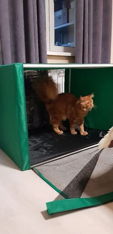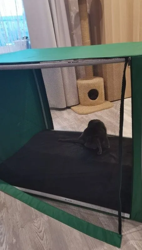 Вольер - тент для животных, для кошек и собак может служить как:выставочная палатка для собак и кошек;палатка для домашнего и дачного содержания собак и кошек;временный уютный дом для Вашего любимца на время путешествия;роддом для кошек и собак, а также для послеродового содержания котят и щенков. Палатка продумана до мельчайших деталей:- лицевая сторона палатки выполнена из пленки, которая пристегивается с помощью молнии;- обратная сторона палатки выполнена из сетки, которая пристегивается с помощью молнии;- боковые стороны палатки закрытые;- палатка разборная; в комплект входит сборный каркас из пластиковых труб вместе с соединительными уголками, который собирается просто и быстро;- в сложенном виде палатка довольно компактна, при хранении занимает мало места;- палатка переносится в чехле, который входит в комплект; для удобной переноски чехол имеет короткую и длинную ручки, также на чехле имеется 2 больших кармана на молнии;- в комплект входит матрац со съемным чехлом на молнии; при необходимости матрац легко снимается для стирки.ОБРАТИТЕ ВНИМАНИЕ! Данная модель клетки имеет очень прочную и жесткую конструкцию, так как собирается с помощью трубок. Поэтому во время выставки вы можете сажать своего любимца сверху на клетку.Такой вольер отлично подойдет для кошек любых пород, крупных и небольших кошек, а также для собак мелких и средних пород.Размер: длина 76см, ширина 56см, высота 56см
