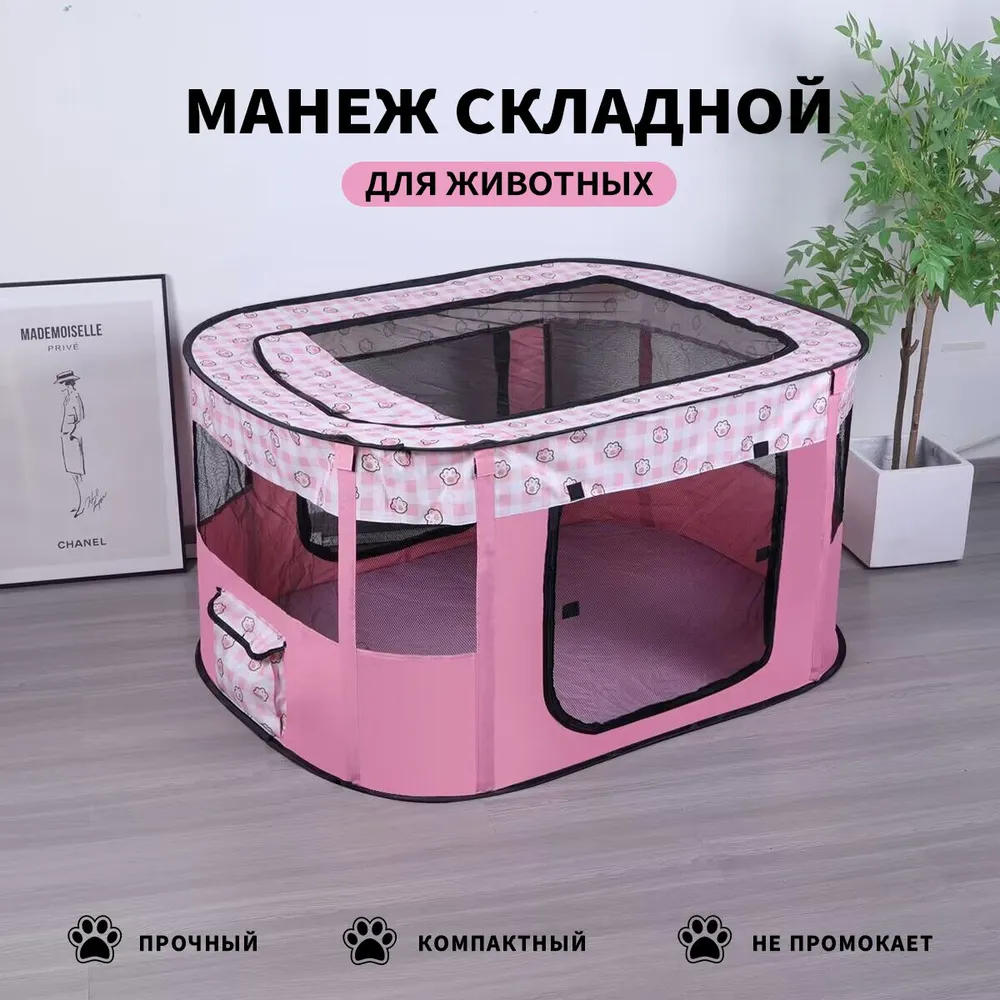 Если Вы заботитесь о здоровье и спокойствии Вашего питомца, то наш складной вольер манеж для собак и кошек прекрасно поместится у Вас в квартире, доме или на даче! Дышащий вольер манеж для щенков и котят хорошо сшит, без запаха, имеет прочное, непромокаемое дно, отстегивающуюся крышу. На стенках вольера для домашних животных имеются кармашки для мелочи. Тентовый домик манеж для щенков и котят имеет прочные стенки и яркий дизайн. Складной вольер для животных мелких и средних пород подходит для хорьков, кроликов, морских свинок, шиншилл, белок. Закрытый вольер загон для дома и квартиры подойдет для изоляции Вашего питомца на время карантина. Защитит от других домашних животных во время течки. Домик вольер клетка манеж незаменим во время путешествий и переездов. В вольере ограждении Ваш питомец меньше подвергается стрессу и никому не мешает в дороге. Клетка ограждение для животных средних пород предназначена для дрессировки щенков и приучению к туалету. Вольер для собак и кошек убережет Ваш дом от разрухи во время отсутствия хозяина, не пострадают мебель, обои, растения. Кошки и котята могут использовать вольер манеж как лежанку, укрытие, домик. Компактный, легкий вольер для собак маленьких и средних пород удобен в эксплуатации, он быстро разбирается, легко складывается в чехол. Непромокаемый вольер для кроликов, шиншилл, хорьков и морских свинок можно взять с собой на природу или дачу. Там клетка послужит загоном для выгула животных. В таком ограждении вольере будет чувствовать себя спокойно кошка с котятами или собака с щенками. Тканевый складной вольер, с отстегивающейся крышей, можно использовать и в качестве игр. В такой домик с удовольствием играют дети. Складной вольер для домашних животных не занимает много места при хранении. Вольер легко сложить в чехол и убрать на хранение под кровать или в шкаф. В разных жизненных ситуациях вольер может превращаться в уютный уединенный домик для животного, в загон для щенков и котят, в барьер, лежак, будку, перегородку, клетку для цыплят, палатку, переноску во время путешествия и посещения выставок, каждый найдёт ему своё применение. Подарите комфорт и спокойствие Вашим питомцам.