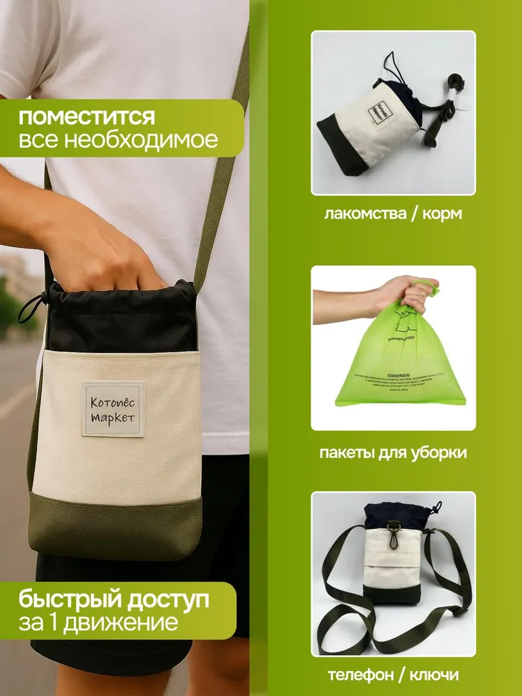 Сумка для лакомств - это идеальный аксессуар для тех, кто любит проводить время со своей собакой на улице. Эта сумка предназначена специально для хранения лакомств и других необходимых вещей, которые вы можете взять с собой во время прогулок или походов с вашим питомцем.Сумка имеет удобную форму, которая позволяет легко носить ее на плече или в руках. Она также оснащена прочной ручкой, которая обеспечивает комфортное ношение сумки даже при длительном использовании.Внутренняя часть сумки выполнена из мягкого материала, который защищает ваши лакомства от повреждений и сохраняет их свежими на протяжении всего времени использования. Кроме того, эта сумка имеет несколько карманов для хранения различных предметов, таких как ключи, телефон и другие важные вещи.Сумка для лакомств - это отличный подарок для любого владельца собаки, который хочет сделать свою жизнь более удобной и приятной. Она поможет вам всегда иметь все необходимое под рукой и не беспокоиться о том, что ваши лакомства будут потеряны или испорчены.