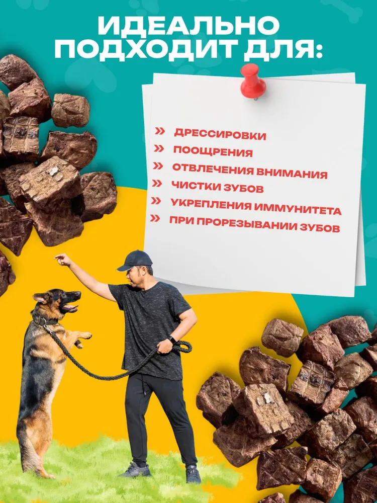 Кусочки высушенного говяжьего легкого. Современное профессиональное оборудование позволяет сохранить высокое содержание микроэлементов. Легкое очень вкусное, ни одна собака не сможет устоять! Кусочки очень удобно использовать в качестве поощрения при дрессуре, и просто на прогулках, при этом продукт не пачкает руки.Говяжье легкое содержит внушительное количество витаминов, при этом оно менее жирное, чем мясо. Лакомство оказывает положительное воздействие на состояние кожи, шерсти и пищеварительную систему. Низкокалорийный деликатес прекрасно усваивается организмом питомца. Лакомство можно употреблять животным с неполной зубной формулой и возрастными изменениями зубочелюстного аппарата. Благодаря вкусовым качествам и структуре деликатес является одним из самых любимых лакомств для наших питомцев. А главное, полезным! Продукт одобрен ветеринарами, имеет сертификаты:Декларация о соответствии РОСС RU Д-RU.РА01.В.05754/24Добровольный сертификат РОСС RU.З2001.04ИБФ1.ОСП28.46879Легкое подходит для собак и кошек разных пород, именно поэтому в наличии разные размеры кусочков: для более мелких и крупных пород. Для Вашего удобства лакомство представлено в разных объемах.