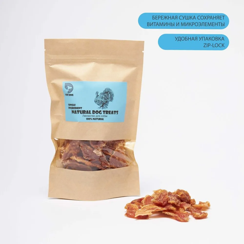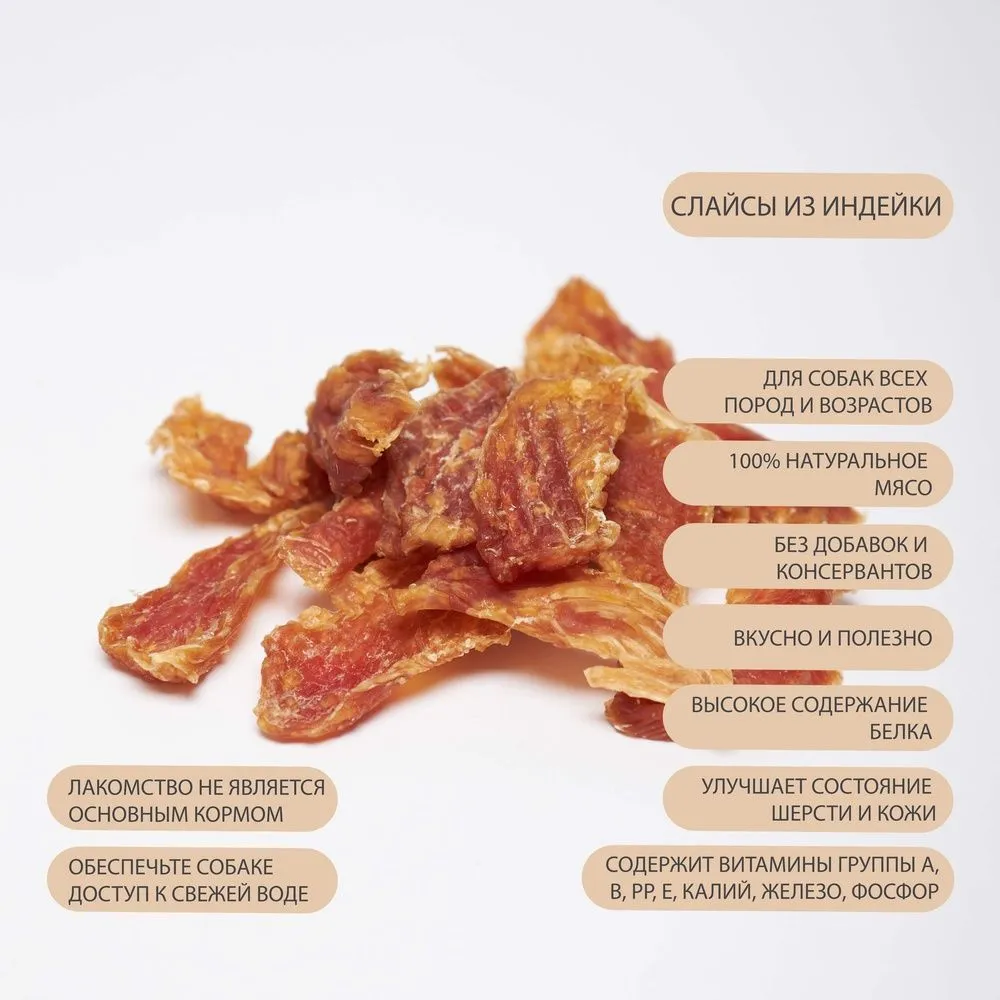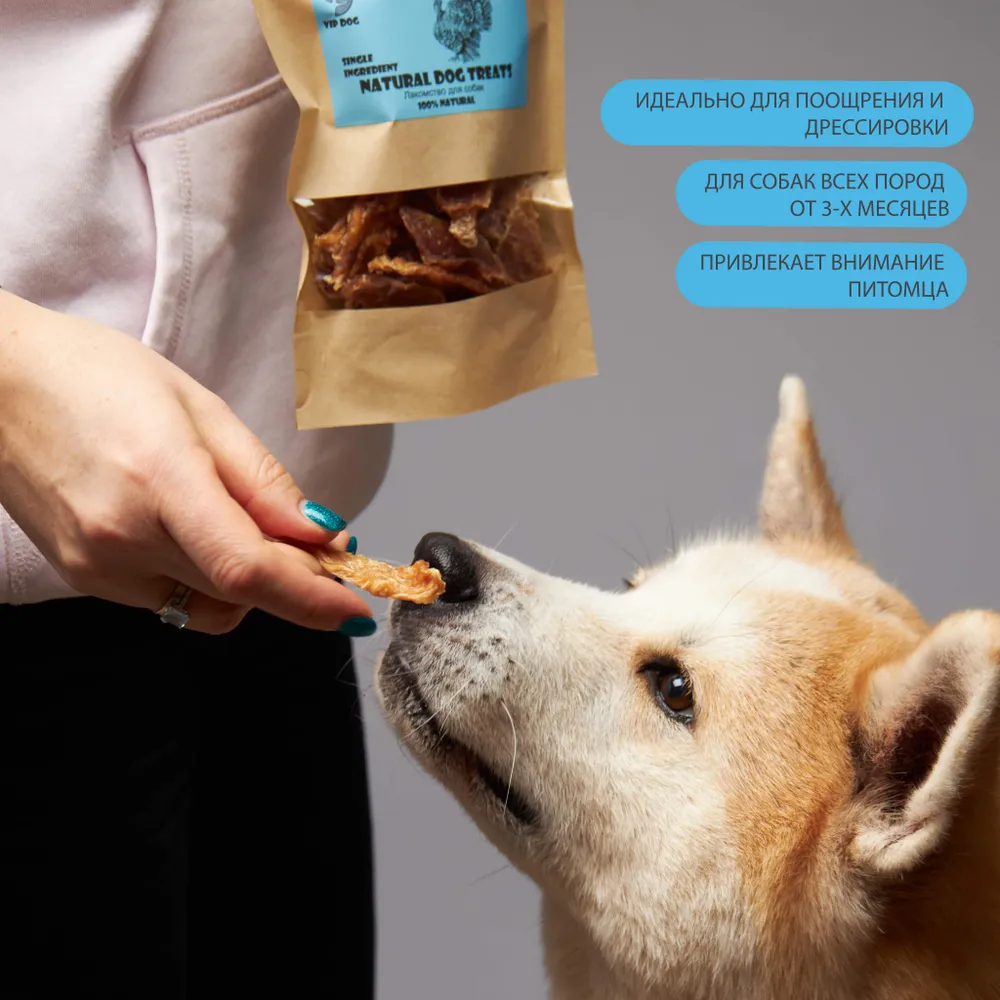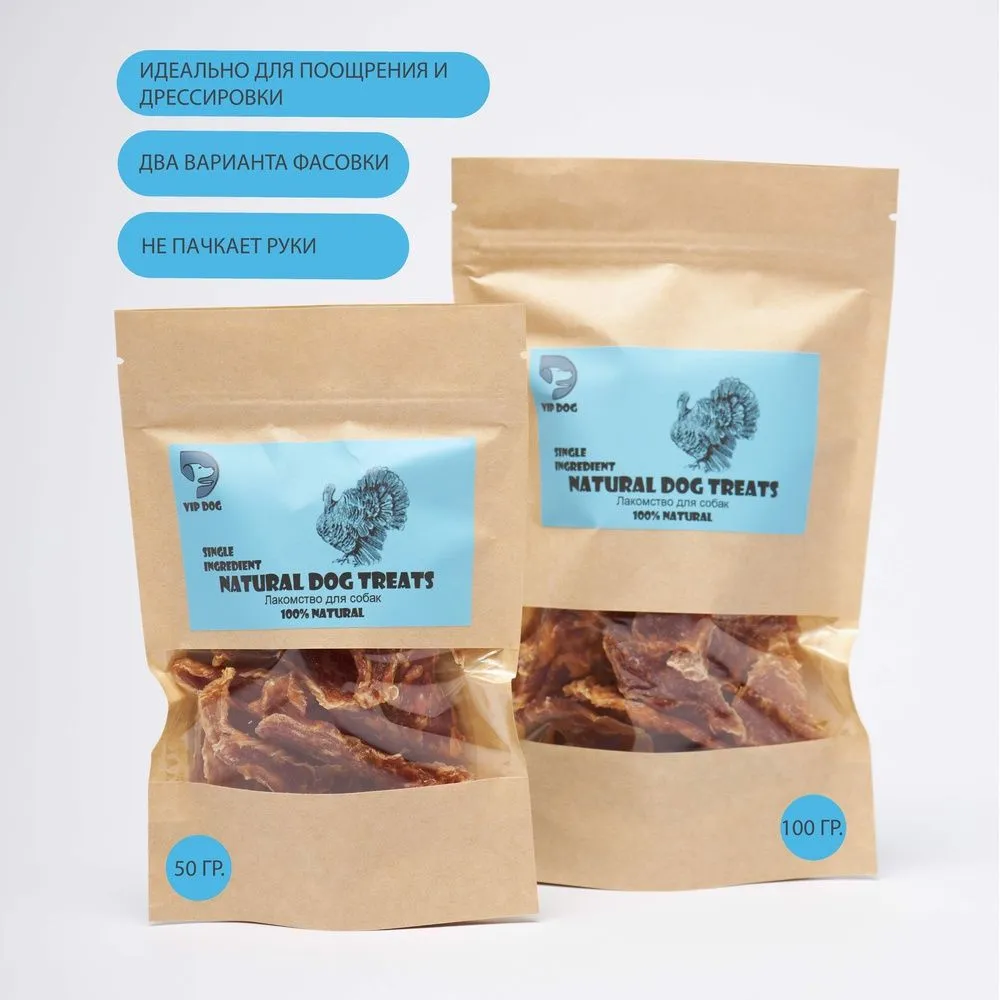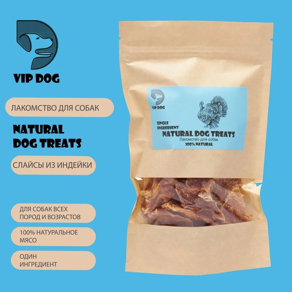 Лакомство для собак VIP DOG — это натуральное и вкусное угощение для вашего четвероногого друга. Слайсы из индейки содержат только один ингредиент - филе индейки, вот почему, они не только вкусные, но и полезные для здоровья собаки.Слайсы из индейки предлагают широкий спектр питательных веществ, включая белки, витамины и минералы, необходимые для поддержания здоровья и энергии вашего питомца. Это лакомство также не содержит искусственных красителей, ароматизаторов и консервантов, что делает его безопасным и полезным дополнением к рациону собаки.VIP DOG предлагает удобную упаковку весом 100 грамм, которую легко брать с собой в поездки или использовать в качестве награды при обучении собаки. Каждый слайс индейки тщательно высушен и имеет прекрасную текстуру, что делает его привлекательным для собаки и обеспечивает долгое время жевания.Покормите своего питомца вкусным и полезным лакомством — Лакомство для собак VIP DOG.