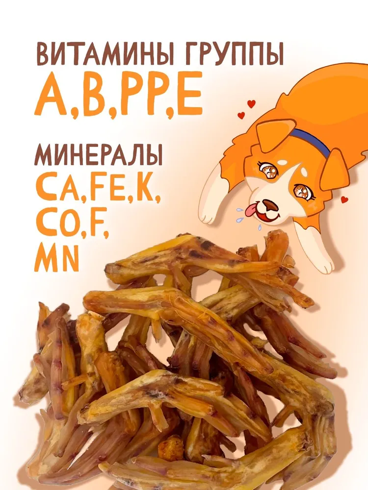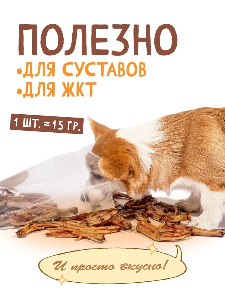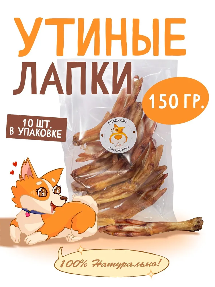 Утиные лапки — идеальное угощение для собак всех пород. Эти натуральные вкусняшки изготовлены из качественной утки и являются прекрасным дополнением к рациону вашего питомца. Долгоиграющие лакомства для собак не только удовлетворят потребность в жевании, но и помогут поддерживать здоровье зубов, выступая в роли натуральной зубочистки. Утиные лапы полезны для суставов и пищеварительной системы. Мясокостный продукт отлично усваивается питомцем и является натуральной БАД к основному рациону.Жевательные косточки прекрасно подходят как для крупных, так и для мелких или средних собак. Их текстура способствует долгой игре и помогает в процессе дрессировки, ведь собака с радостью выполнит команды за такие лакомства. Утиные лапки отлично стимулируют естественные инстинкты жевания, что делает их отличным выбором для активных щенков.Сушеные угощения обеспечивают необходимыми витаминами и минералами, способствуя общему укреплению здоровья вашего питомца. Каждый кусочек вкуснятины "кость для собак" содержит полезные элементы, которые благоприятно влияют на организм собаки, поддерживая ее жизненные силы и активность.Вкуснятина очень напоминает деревенские лакомства для собак, поэтому ваш четвероногий друг будет счастлив получить такие вкусняшки для собак как награду после прогулок или тренировок.Утиные лапки от нашего бренда не содержат консервантов и усилителей вкуса, и не подвергаются какой-либо обработке (обезжиривание и прочее). Только 100% натуральный состав для пользы и здоровья Вашего питомца.Вкусно так, аж лапочки оближешь!