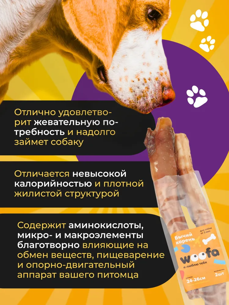 Долгоиграющее лакомство для собак WOOFA представляет собой высококачественный продукт, изготовленный из натурального бычьего корня, длиной 20-30 см и весом 100 грамм. Это идеальная погрызушка для ваших четвероногих друзей, которая не только подарит им удовольствие от жевания, но и поможет поддерживать здоровье зубов.Сушеное лакомство для собак WOOFA станет настоящим лакомством для вашего питомца. Благодаря своей текстуре, корень обеспечивает долговременное жевание, что способствует улучшению состояния зубов и десен. Это dental-лакомство идеально подходит для повседневного использования, позволяя вашему четвероногому другу не только наслаждаться вкусом, но и заботиться о чистоте зубов.Натуральные лакомства для собак WOOFA не содержат искусственных добавок и консервантов, что делает их безопасными для здоровья вашего любимца. Данный продукт идеально подходит для собак разных размеров, обеспечивая их необходимым уровнем активности и удовлетворяя жевательные инстинкты.Вы можете быть уверены, что выбирая бычий корень WOOFA, вы дарите своему питомцу не только вкусное, но и полезное лакомство.