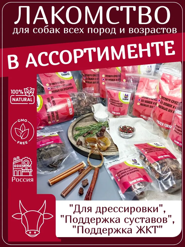 Представляем натуральное лакомство для собак — говяжья трахея, нарезанная кольцами, идеально подходящее для всех пород и возрастов. Это сушёное лакомство без добавок и консервантов, рекомендованное ветеринарами для поддержания здоровья и активности вашего питомца.🐾 Преимущества:Натуральный состав: 100% говяжья трахея, без добавок, консервантов и красителей.Полезные вещества: Содержит хондроитин и коллаген, способствующие укреплению суставов и связок, а также поддержанию здоровья кожи и шерсти.Лёгкость усвоения: Благодаря своей структуре, лакомство легко переваривается и подходит для собак с чувствительным пищеварением.Подходит для дрессировки: Удобные кольца не пачкают руки и идеально подходят для поощрения во время тренировок.Подходит для всех пород и возрастов: Рекомендовано для щенков от 3 месяцев, взрослых и пожилых собак всех размеров.🩺 Рекомендации ветеринаров:Поддержка суставов: Хондроитин и коллаген в составе трахеи способствуют укреплению суставов и связок, что особенно важно для активных собак и в период роста у щенков.Здоровье кожи и шерсти: Содержание коллагена положительно влияет на состояние кожи и шерсти, улучшая их внешний вид и структуру.Поддержка пищеварения: Говяжья трахея легко усваивается и подходит для собак с чувствительным пищеварением.📌 Рекомендации по применению:Дозировка: Лакомство не должно превышать 10% от суточного рациона собаки.Наблюдение: При введении нового продукта в рацион наблюдайте за реакцией питомца, особенно если ранее были аллергические реакции на говядину.Хранение: Храните в сухом, прохладном месте, избегая прямых солнечных лучей.ВАЖНО! Мы не используем добавки при производстве наших продуктов, из-за чего они имеют специфический запах, иногда резкий для человека, но притягательный для собак. Этот естественный аромат свидетельствует о натуральности продукта и высоком содержании белка, что делает лакомство особенно привлекательным для вашего питомца.Побалуйте своего питомца вкусным и полезным лакомством — говяжьей трахеей, нарезанной кольцами, одобренной ветеринарами и любимой собаками!
