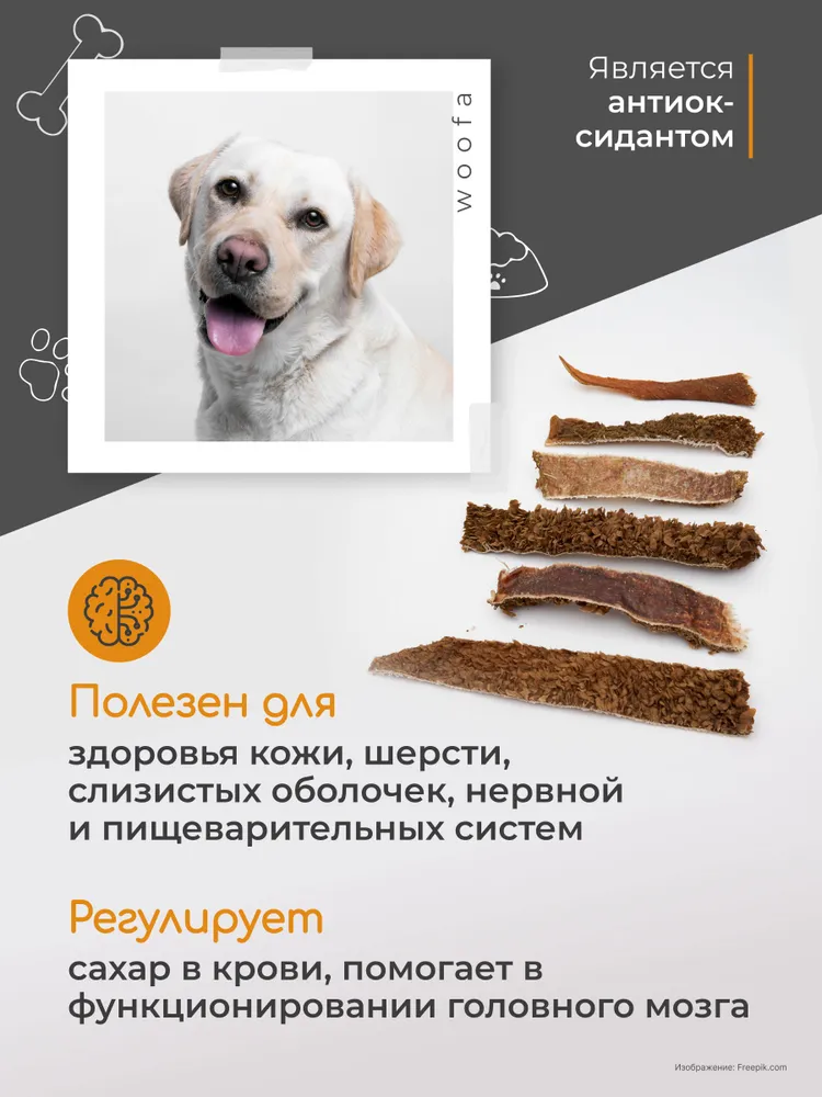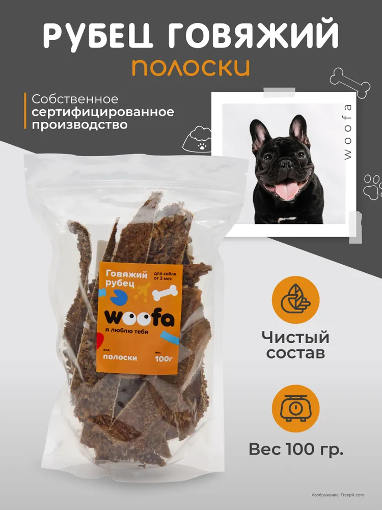 Лакомство для собак WOOFA Рубец говяжий в форме полосок - это натуральное угощение, созданное специально для ваших четвероногих друзей. Объем упаковки составляет 100 грамм, что делает его удобным для хранения и использования. Это лакомство отлично подходит для обучения и поощрения вашего питомца, а также станет замечательной добавкой к его рациону.Изготавливается из качественного говяжьего рубца, проходит дополнительную очистку от жира, что обеспечивает высокую питательную ценность и насыщенный вкус. Такой продукт прекрасно справляется с задачей поддержания здоровья зубов вашего питомца, благодаря своей текстуре, которая способствует естественному очищению зубов при жевании. Это не только вкусное, но и полезное лакомство, которое порадует даже самых привередливых собак.Лакомство WOOFA безопасно и отвечает всем необходимым стандартам качества, что делает его отличным выбором для ежедневного употребления. Естественный состав без искусственных добавок и консервантов гарантирует, что ваш питомец получает только самое лучшее. Это идеальный вариант для поддержания активности и хорошего настроения вашего любимца.