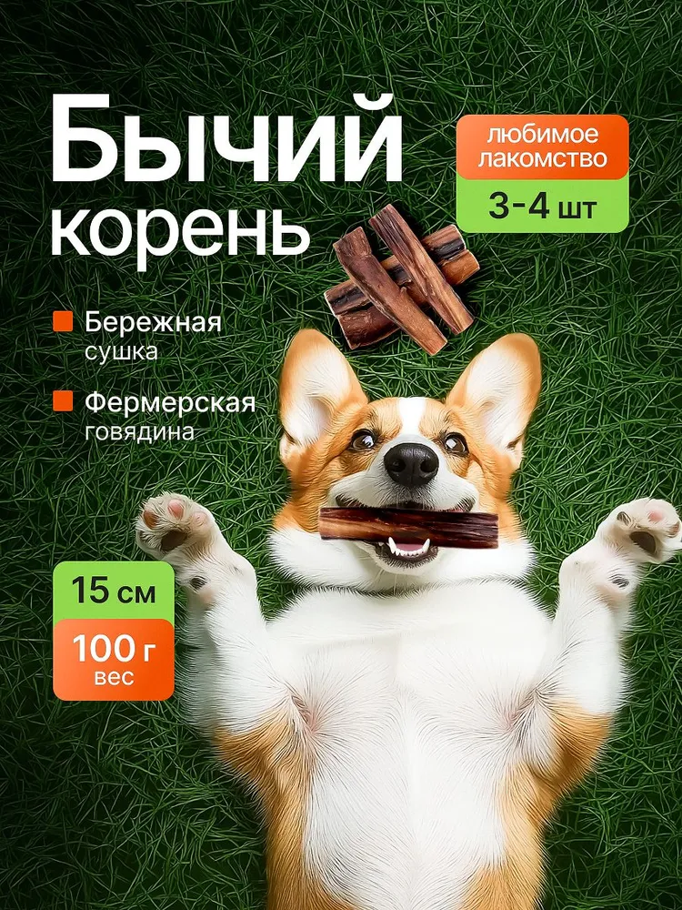 Ищете натуральное и полезное лакомство для вашего четвероногого друга? Бычий корень – это идеальный выбор для заботы о здоровье и благополучии вашей собаки!Основные преимущества:Естественное укрепление зубов и десен: Бычий корень помогает эффективно очищать зубы от налета и массировать десны, предотвращая развитие заболеваний полости рта.Долгоиграющее удовольствие: Благодаря своей плотной текстуре, это лакомство удовлетворяет жевательный инстинкт собаки, обеспечивая длительное и полезное занятие.Высококачественный натуральный продукт: Бычий корень не содержит искусственных добавок и консервантов, что делает его безопасным и здоровым выбором для вашего питомца.Поддержка общего здоровья: Регулярное употребление бычьего корня способствует улучшению пищеварения и общему укреплению иммунной системы собаки.Отвлекающий эффект: Идеально подходит для собак, склонных к порче мебели или обуви – надолго займет вашего питомца полезным делом!Подарите своей собаке заботу и радость с бычьим корнем! Сделайте выбор в пользу натурального и эффективного лакомства, которое принесет вашему питомцу не только удовольствие, но и ощутимую пользу для здоровья.Приобретите бычий корень сегодня и убедитесь сами, как он может изменить жизнь вашего любимца к лучшему!