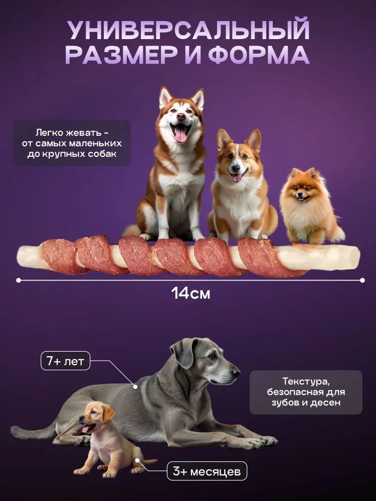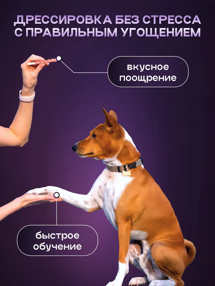 Натуральные лакомства для собак всех пород, которые точно понравятся вашему питомцу! Лакомство для собак Cosmodog – это не просто вкусняшки для собак, это полноценное сбалансированное лакомство, созданное для поддержки здоровья и благополучия вашего четвероногого друга.В этих лакомствах для собак средних и крупных пород, а также для мелких пород, заключен богатый источник протеина – уникальный компонент e-protein. Этот инновационный белковый концентрат, полученный из личинки Чёрной львинки (BSF), необходим для поддержания мышечной массы и общего тонуса вашей собаки. Содержащийся в нём протеин превосходит по своим питательным качествам говядину и индейку, при этом он гипоаллергенен и отлично усваивается.Лакомства для дрессировки собак обладают изысканным вкусом, который без сомнения понравится вашему питомцу, и помогут вам сформировать нужное поведение в игровой форме. Кроме того, они способствуют укреплению зубов и поддержанию оптимального состояния полости рта, что делает их идеальным выбором для заботы о здоровье зубов вашей собаки.Важно и то, что эти вкусняшки для собак благоприятно влияют на пищеварение, благодаря натуральному составу и добавлению ветеринарными нутрициологами специальных компонентов. Ваш питомец получит не только порцию удовольствия, но и заботу о своем пищеварении.Преимущества лакомств для собак Cosmodog- Эксклюзивная рецептура от ветеринарных нутрициологов.- Высокое содержание протеина для поддержания здоровья и активности.- Гипоаллергенный состав, подходящий даже для самых чувствительных желудков.- Укрепление зубов и поддержание гигиены полости рта.- Идеально подходят для использования в качестве награды при дрессировке.Дайте своему питомцу больше! Помимо вкусных лакомств, мы производим полнорационный, сбалансированный корм от Cosmodog, который так же содержит инновационный e-protein. Этот белок не только превосходит по своим питательным качествам традиционные источники, такие как говядина и индейка, но и является гипоаллергенным, что делает его идеальным выбором для собак с аллергией и чувствительным пищеварением.С Cosmodog ваш питомец получит всё необходимое для активной и здоровой жизни. А чтобы знакомство с нашим кормом было ещё приятнее, мы дарим вам промокод на скидку 20%. Подарите своему любимцу лучшее – он этого заслуживает!