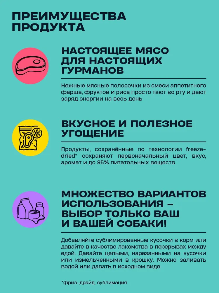 Сублимированный продукт, Высокое содержание белка, Без усилителей вкуса