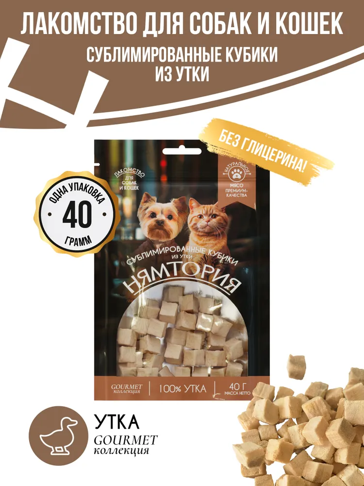 Лакомство для кошек и собак "Сублимированные кубики из утки" — это лакомство, сохраненное природным путем, которое раскрывает истинную суть утиных деликатесов. Каждый кубик необычайно насыщен вкусом и ароматом, что делает его отличным угощением для любого домашнего любимца, который ценит качество.- высокое содержание натурального мяса;- без глицерина;- аппетитная форма;- качественная упаковка;- подходят для ежедневного использования.Состав:100% утка.Питательная ценность на 100 г:сырой белок 70%, сырой жир 4,2%, сырая клетчатка 1,0%, сырая зола 6,5%, влажность 8%.Рекомендации по кормлению (в день):2-3 г на 1 кг веса питомца (в зависимости от его активности и вида основного корма). У вашего питомца всегда должна быть свежая вода. Продукт является дополнением к основному рациону.Хранить в сухом, защищенном от света месте при температуре от 0 до 25°С, относительной влажности воздуха не более 70%. После вскрытия хранить не более 14 дней в плотно закрытой упаковке.Срок годности: 24 месяца.