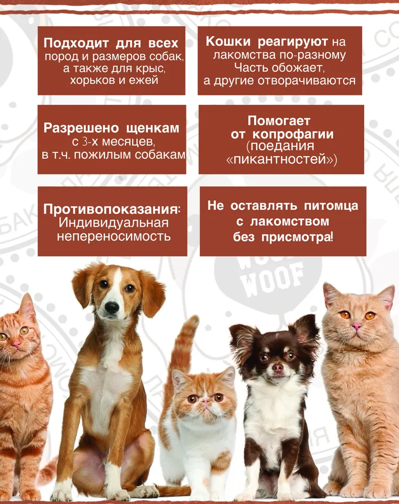 Порадуйте вашего четвероногого друга натуральными и полезными лакомствами от WOOF-WOOF и он всегда будет вам благодарен!