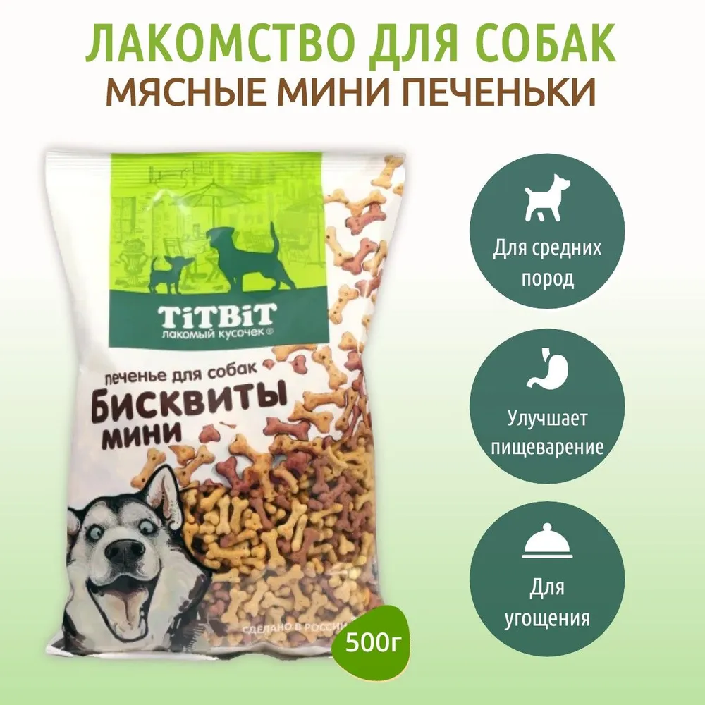 Почувствовать заботу и любовь Вашему питомцу поможет изысканное лакомство - Печенье для собак Бисквиты мясные мини. Угощение, созданное на основе натуральных ингредиентов, с добавлением трёх видов мяса (утки, говядины и баранины) и приготовленное по уникальной рецептуре и технологии TiTBiT.