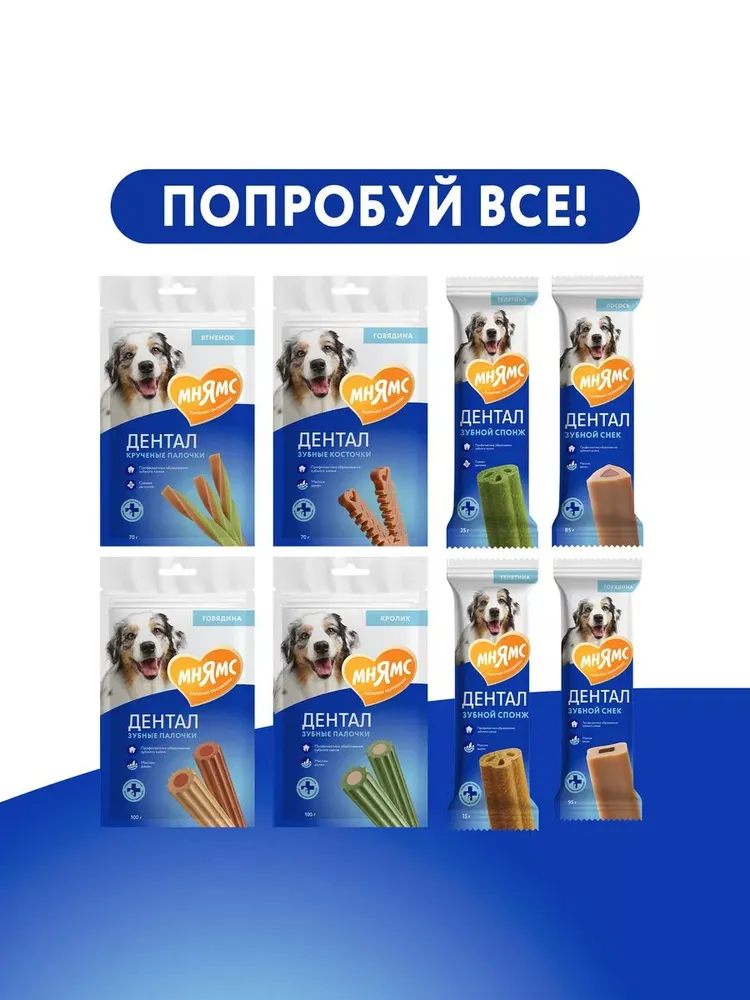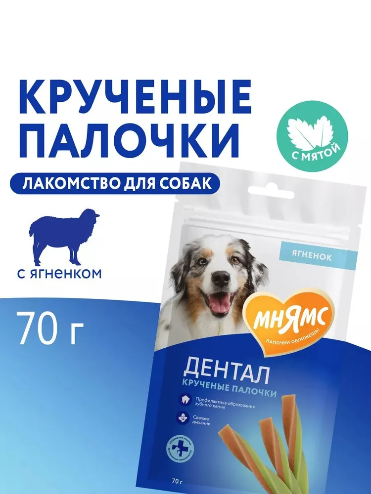 Лакомство Мнямс ДЕНТАЛ для собак "Крученые палочки" с ягненком и мятой – это идеальное угощение для вашего любимца. В упаковке содержится 10 палочек по 70 грамм каждая, что обеспечивает длительный запас и удовольствие для вашего четвероногого друга. Этот продукт специально разработан с учетом потребностей собак: он не только радует их вкусом свежей мяты и нежным ягненком, но и способствует поддержанию гигиены полости рта. Жевательные палочки помогают удалять зубной налет и предотвращают образование зубного камня, а мята освежает дыхание вашего питомца. Сбалансированный состав гарантирует, что лакомство не только вкусное, но и полезное – содержатся витамины и минералы, необходимые для активной жизни и крепкого здоровья собаки. Угощая питомца этими крученными палочками, вы можете быть уверены, что ему достанется высококачественное и заботливо приготовленное лакомство для животных, которое отлично подойдет для ежедневного ухода за зубами и здорового образа жизни. Это лакомство подойдет собакам всех пород и размеров, становясь идеальным дополнением к их основному рациону. Почувствуйте радость вашего любимца от аппетитного и полезного угощения с лакомствами от Мнямс, созданными для максимального удовольствия и заботы о вашем питомце.