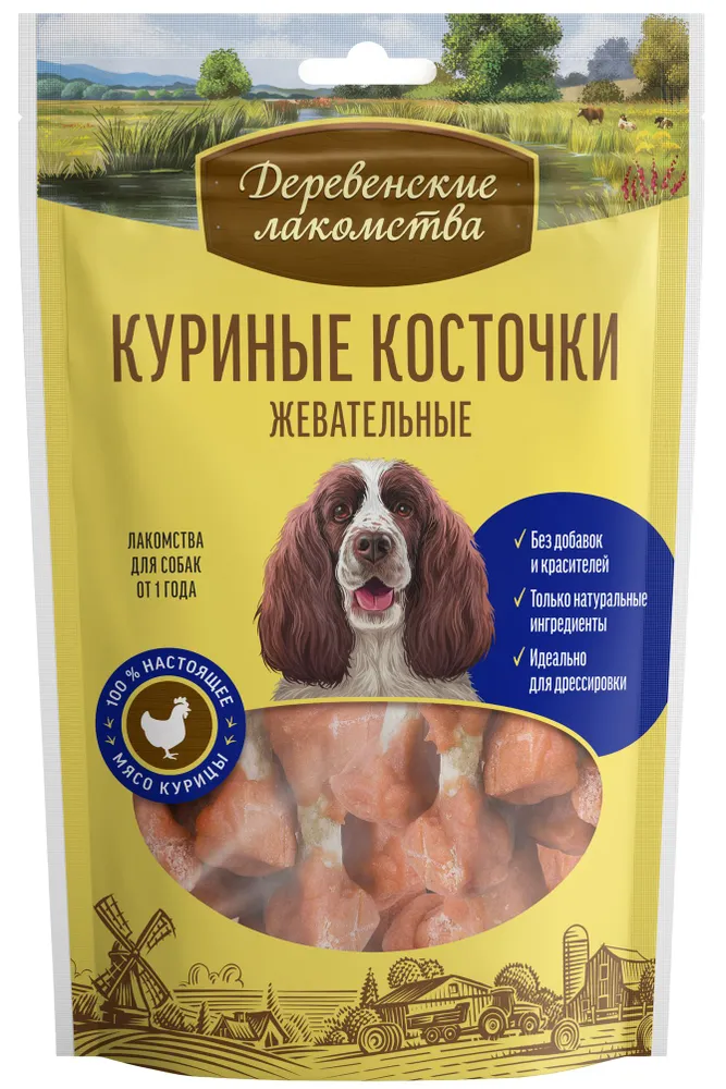 Куриные косточки жевательные для cобак (100% мясо)Наверное, так собаки представляют себе идеальное лакомство. Сушеное куриное мясо на сочной жевательной палочке станет обязательным пунктом в списке ваших покупок. Состав: куриное филе, сыромятная куриная кожа