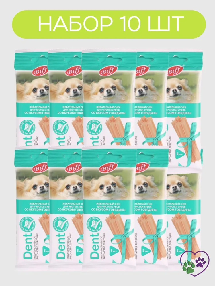 Откройте для своей собаки лучший способ заботы о здоровье и свежести ее рта — жевательные снеки для собак Biff Dent! Эти супер-премиум снек для собак специально разработаны для поддержания чистоты зубов, профилактики зубного налета и укрепления десен, делая уход за питомцем простым и приятным. Идеально подходят для мелких пород, учитывая их анатомические особенности и потребности.Наши жевательные снеки для собак Biff Dent — это не просто вкусное лакомство, а эффективное средство для гигиены полости рта. Благодаря уникальной форме и текстуре, снек способствует естественному очищению зубов и борьбе с мягким зубным налетом, что особенно важно для сохранения здоровья вашего питомца на долгие годы. В составе только натуральные ингредиенты: рис, мясо и субпродукты, включая 20% говядины, растительный белок, клетчатку, лецитин, масла и животные жиры, а также фитокомплексы из растений и натуральные ароматизаторы. Такой богатый и сбалансированный состав делает снек не только полезным, но и очень вкусным.Снеки для собак Biff Dent — это отличный выбор для тех, кто заботится о здоровье зубов своего питомца и хочет сделать ежедневный уход максимально приятным. Они идеально подходят для профилактики зубного налета и поддержания свежего дыхания без лишних хлопот.Выбирайте снеки для собак Titbit или снек для собак Biff Dent — и ваш любимец будет радовать вас ярким азартом и отличным здоровьем! Не откладывайте заботу о зубах вашего питомца — закажите сейчас и получите 10 упаковок по 9 штук в каждой. Подарите своему собаки чистую улыбку и здоровье уже сегодня!