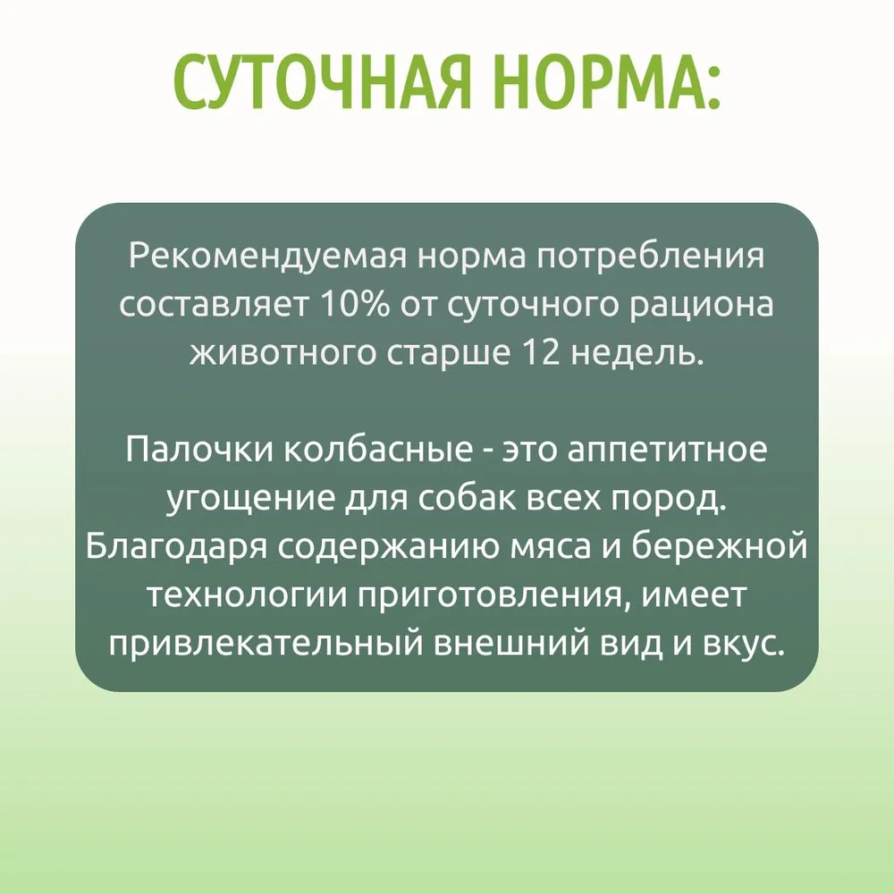 Палочки колбасные - это аппетитное угощение для собак всех пород. Благодаря содержанию мяса и бережной технологии приготовления, имеет привлекательный внешний вид и вкус. Мясо и мясные субпродукты, входящие в основу колбасных палочек, являются превосходным источником высококачественного животного белка, витаминов и минералов. Выгодная XXL упаковка с удобным замком zip-lock сохранит лакомство и продлит удовольствие Вашего любимца.\n\nРекомендуемая норма потребления составляет 10% от суточного рациона животного старше 12 недель. Обеспечьте Вашему питомцу доступ к свежей питьевой воде.