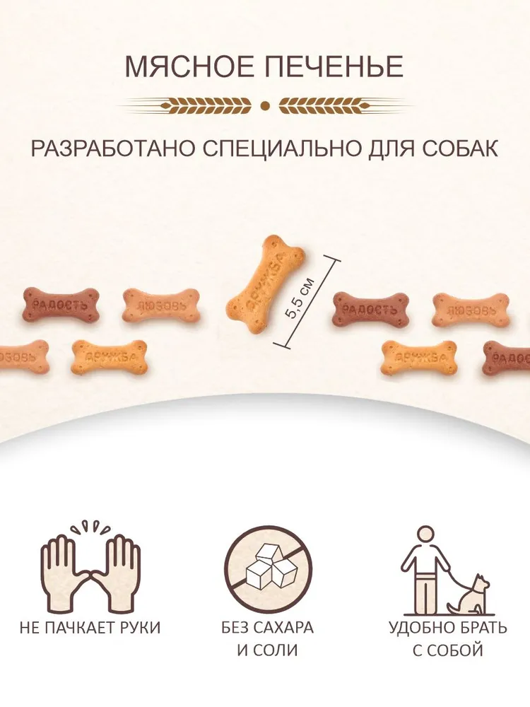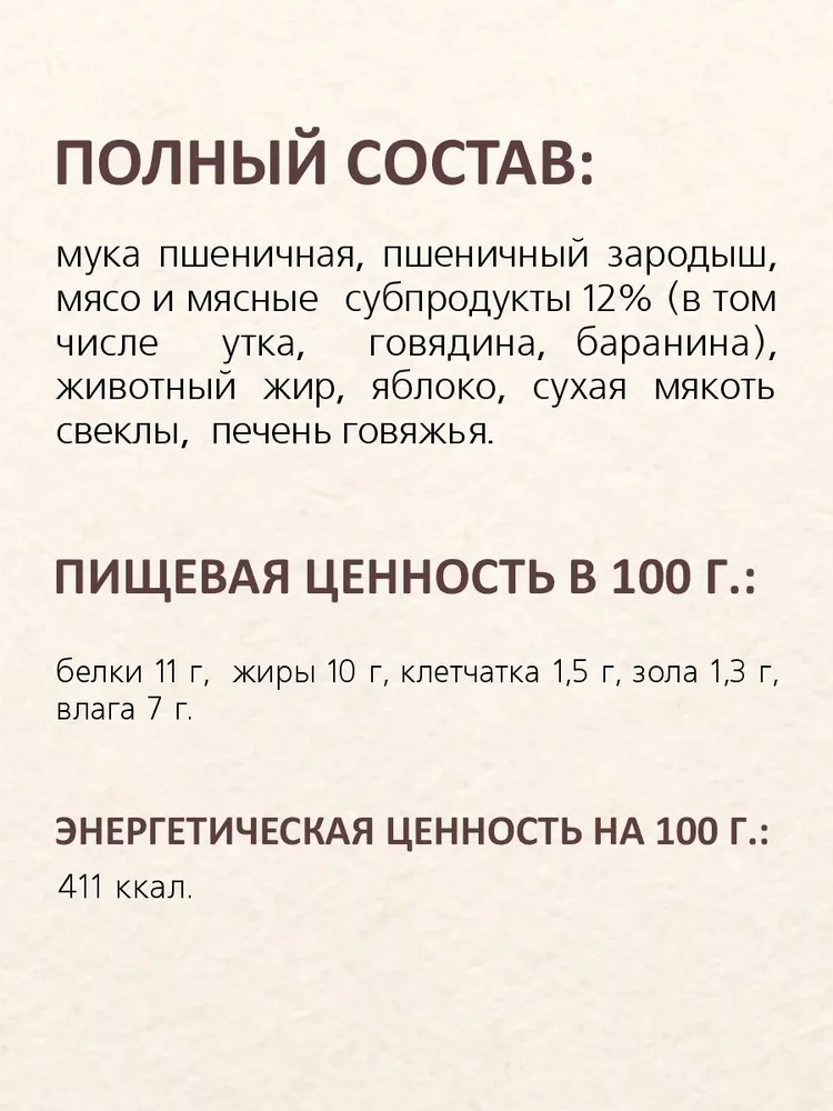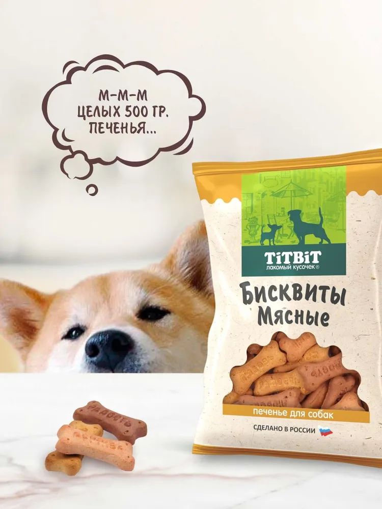 Мясная выпечка - это вкусное повседневное лакомство, разработанное специально для собак всех пород. Чувствительный нос питомца сразу уловит запах мясного угощения, ведь мы добавили в состав 50% мясных ингредиентов по сырому весу.В составе угощения только натуральные ингредиенты.Вкусное повседневное лакомство для собак мини и маленьких пород. Поощрение при дрессировке, игре для собак средних и крупных пород.Вкусняшки удобно брать с собой на прогулку или выставку. Мясное печенье для собак не содержит сахара, соли и не пачкает руки.Мясная выпечка поможет показать вашу любовь и заботу.Поощрить питомца за хорошее поведение или выполненные команды.Порадовать питомца вкусным угощением.Подобрать любимое лакомство по вкусу, форме и назначению.Нажмите на картинку для перехода к лакомствам.О TiTBiT- 400+ лакомств, чтобы сделать питомца счастливее.- Первый Российский производитель угощений для питомцев.- Лакомства компании производятся только в России, из высококачественного сырья, поставляемого Российскими фермерскими хозяйствами.- Производство сертифицировано по международным стандартам HACCP ISO 22000:2005 в области безопасности пищевой продукции.