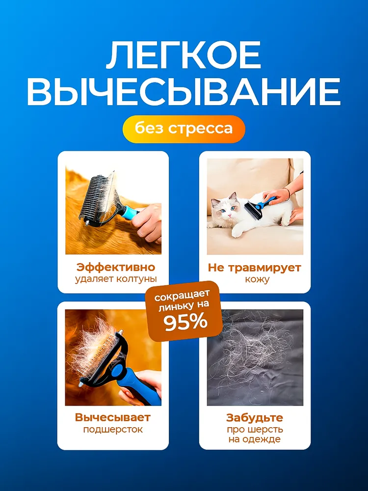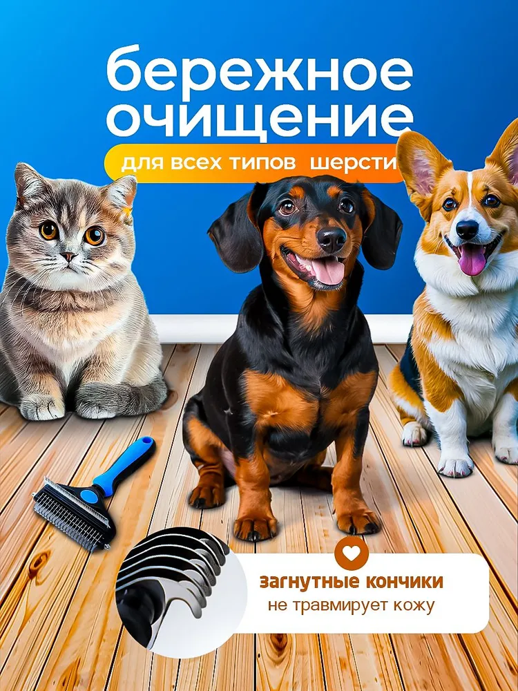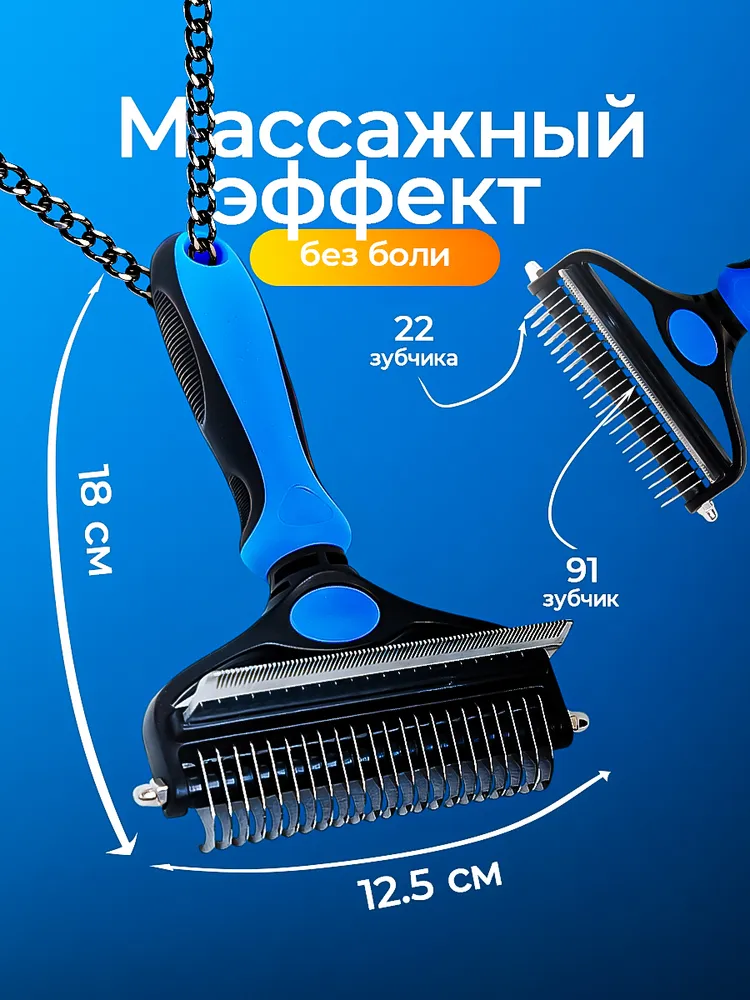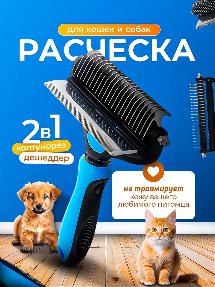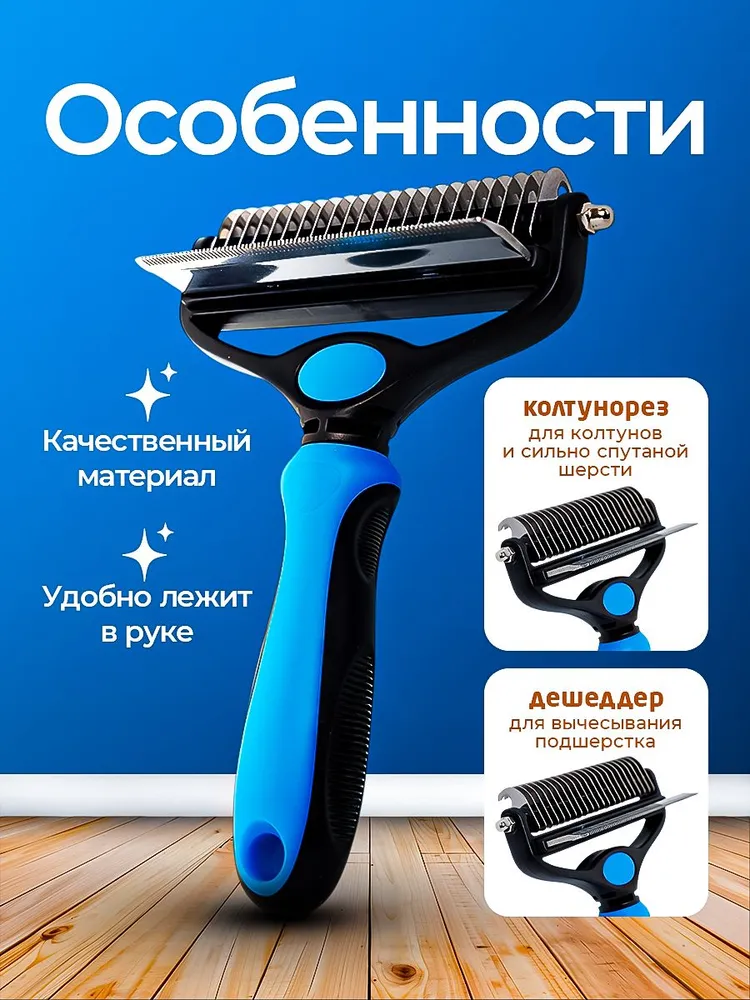 Расчёска 2в1 для собак и кошек, Чесалка-Пуходёрка, Дешеддер с Колтунорезом и фурминатором