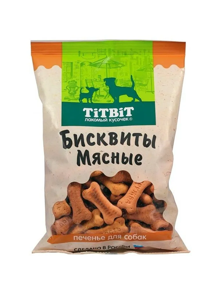 Почувствовать заботу и любовь Вашему питомцу поможет изысканное лакомство - Печенье для собак Бисквиты мясные. Угощение, созданное на основе натуральных ингредиентов, с добавлением яблок и трёх видов мяса (утки, говядины и баранины) и приготовленное по уникальной рецептуре и технологии TiTBiT.