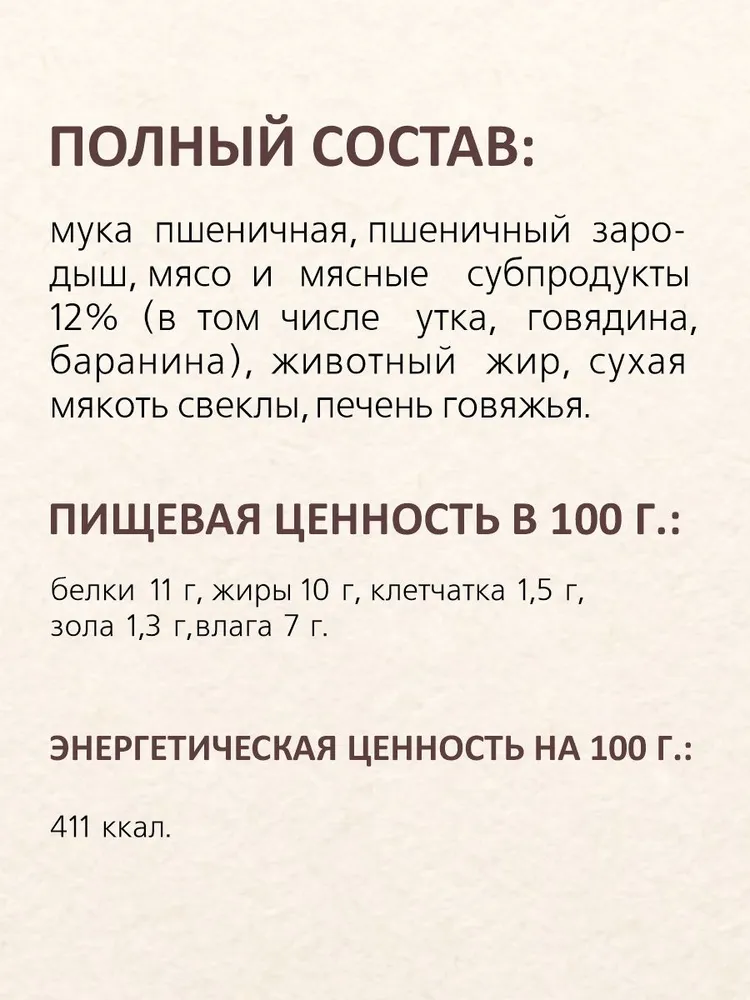 Мясная выпечка - это вкусное повседневное лакомство, разработанное специально для собак всех пород. Чувствительный нос питомца сразу уловит запах мясного угощения, ведь мы добавили в состав 50% мясных ингредиентов по сырому весу.В составе угощения только натуральные ингредиенты.Вкусное повседневное лакомство для собак мини и маленьких пород. Поощрение при дрессировке, игре для собак средних и крупных пород.Вкусняшки удобно брать с собой на прогулку или выставку. Мясное печенье для собак не содержит сахара, соли и не пачкает руки.Мясная выпечка поможет показать вашу любовь и заботу.Поощрить питомца за хорошее поведение или выполненные команды.Порадовать питомца вкусным угощением.Подобрать любимое лакомство по вкусу, форме и назначению.Нажмите на картинку для перехода к лакомствам.О TiTBiT- 400+ лакомств, чтобы сделать питомца счастливее.- Первый Российский производитель угощений для питомцев.- Лакомства компании производятся только в России, из высококачественного сырья, поставляемого Российскими фермерскими хозяйствами.- Производство сертифицировано по международным стандартам HACCP ISO 22000:2005 в области безопасности пищевой продукции.