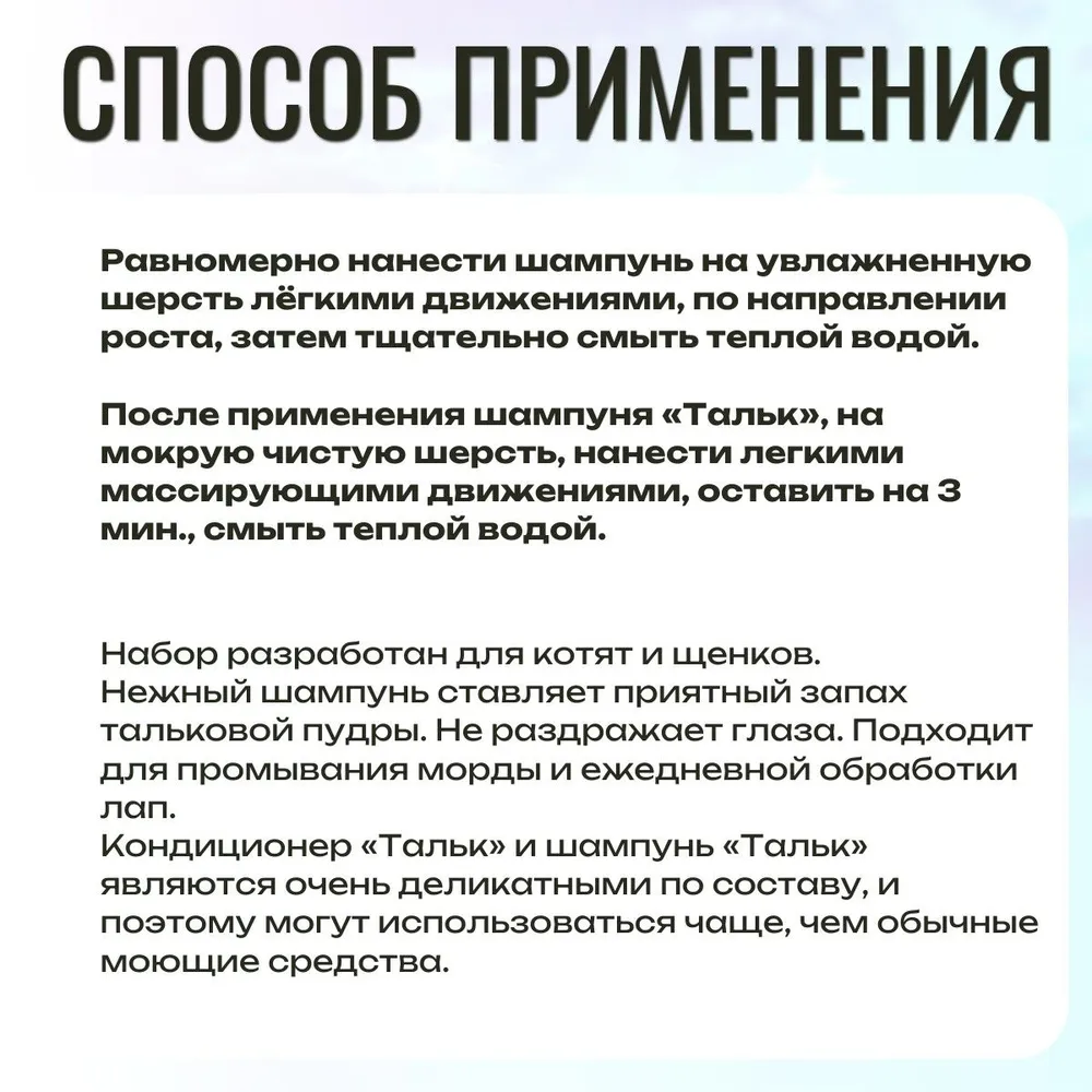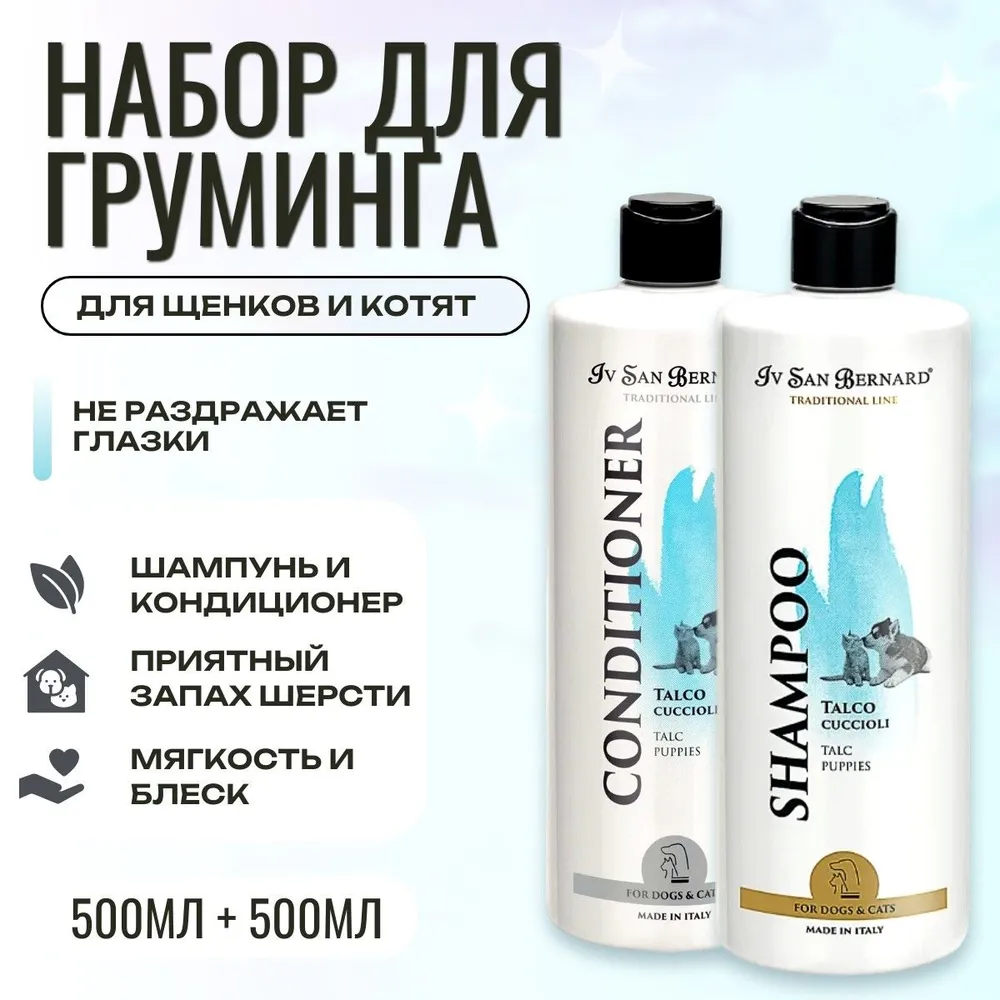 Набор для груминга Шампунь 500 мл + Кондиционер 500 мл. ISB Traditional Line Talc для щенков и котят. Iv San Bernard. Ив Сан Бернард Традиционная линия Тальк