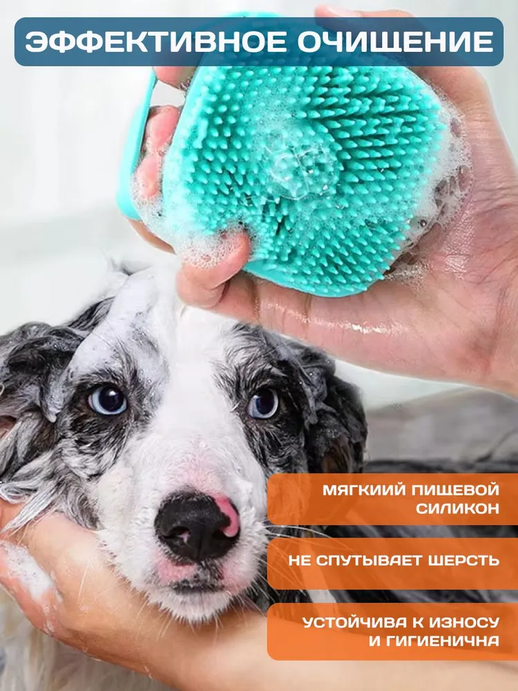 Простота использования - дозатор встроен прямо в щётку1. Налейте шампунь и немного воды в дозатор.Силиконовая мочалка имеет встроенный резервуар для жидких средств, объемом 80 мл. Удобный дозатор позволяет легким нажатием выдавить нужное количество жидкого мыла или геля для душа.2. Массирующими движениями вымойте животное.Эргономичная форма ручки позволяет мыть собаку или кошкуодной рукой! Система распределяет необходимое количество шампуня, чтобы очистить загрязненную шерсть даже в труднодоступных местах - под хвостом и на животе.Удобство и безопасность