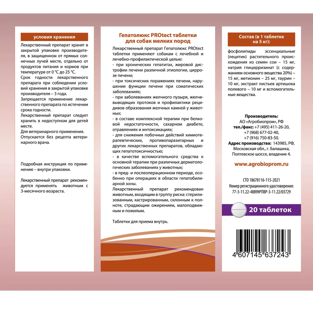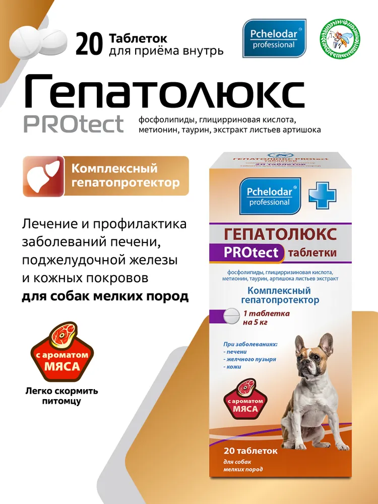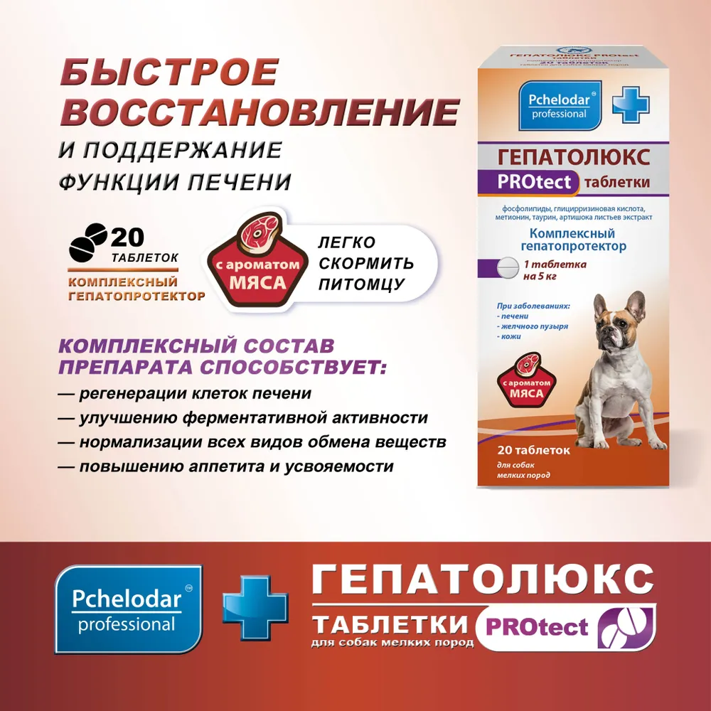 Гепатолюкс - это средство, которое специально разработано для лечения заболеваний печени у собак мелких пород. Эти таблетки содержат в себе уникальную формулу, которая помогает быстро и эффективно восстановить функции печени и улучшить общее состояние животного.Собаки мелких пород часто страдают от различных заболеваний печени, таких как гепатит, жировая дистрофия, цирроз и другие. Гепатолюкс помогает бороться с этими проблемами, обеспечивая комплексное воздействие на печень и способствуя ее восстановлению.Таблетки Гепатолюкс легко дозировать и удобно давать животному. Они имеют приятный вкус, что делает процесс лечения более комфортным как для собаки, так и для ее владельца. Кроме того, данное средство не вызывает побочных эффектов и хорошо переносится животными.Пчелодар - производитель Гепатолюкс, известный своим качественным продукцией и долгим сроком годности. Приобретая этот препарат, вы можете быть уверены в его эффективности и безопасности для вашего питомца.Не откладывайте заботу о здоровье вашей собаки на потом. Закажите Гепатолюкс прямо сейчас и обеспечьте своему питомцу надежную защиту и поддержку в лечении заболеваний печени. Ведь здоровье вашего четвероногого друга - в ваших руках!