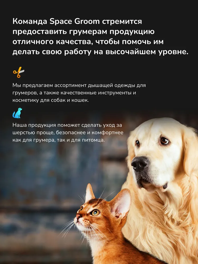 Выгодный увлажняющий набор Space Groomдля собак и кошек🟡 Выгодный увлажняющий набор включает в себя шампунь и кондиционер Space Groom. Данные средства разработаны в одной концепции и рекомендуются применяться совместно, чтобы достигнуть максимального эффекта.🟡Увлажняющий шампунь-концентрат 1:20 с ароматикой манго прекрасно подходит для любых видов и типов шерсти, увлажняет, питает, защищает и восстанавливает шерсть, сохраняя её объем и не пересушивая. Свежий аромат экзотического манго подарит Вам летнее настроение и окружит питомца нежным и приятными тропическим ароматом. Д-пантенол и протеины пшеницы в составе шампуня активно увлажняют шерсть, обволакивая каждый волос, сохраняют её естественный объем и препятствуют дальнейшей потере влаги. Уникальные масла Камелии, Кокоса и Амла дополнительно увлажняют шерсть, защищают от внешних негативных факторов, питают, не утяжеляют, придают пышность, блеск и шелковистость шерсти. Масло Камелии насыщено витаминами А, Е и F, стимулирует выработку проколлагена и полностью усваивается организмом животного. Масло Кокоса восстанавливает структуру волоса и поддерживает здоровое состояние кожи. Масло Амлы богато витаминами В и С, что активно предотвращает выпадение и сечение волоса, придаёт пышность и здоровый блеск, позволяет легко укладывать шерсть.🟡Профессиональный увлажняющий кондиционер-концентрат 1:10 Mango Space Groom идеально подходит для любого типа шерсти собак и кошек, особенно для требующего увлажнения и придания объёма. Новый экзотический аромат Манго надолго оставит у вас и вашего питомца только хорошее и летнее настроение. Оздоравливает и улучшает структуру шерсти, питает и увлажняет, придаёт блеск, объём и антистатический эффект, а также облегчает расчесывание. Входящее в состав кондиционера масло Ши обеспечивает кожу и шерсть животного витаминами A, B и F, а масло кокоса дает глубокое увлажнение, питание и общее оздоровление кожного покрова.🟡 Способ применения шампуня:предварительно развести в тёплой воде необходимое количество шампуня в пропорции до 1:20 в зависимости от степени загрязнения и типа шерсти животного, массирующими движениями нанести на хорошо смоченную шерсть и вспенить, смыть тёплой водой. Для максимального эффекта после шампуня используйте кондиционер Mango Space Groom.🟡 Состав шампуня: Aqua (Water), Sodium Laureth Sulfate, Glycine Soja (Soybean) Oil, Shea Butter, Cocos Nucifera (Coconut) Butter, Sodium Chloride, Polyquaternium-7, Cocamidopropyl Betaine, Cocamide DEA, Citric Acid, Parfum (Fragrance), Methylchloroisothiazolinone, Methylisothiazolinone, Panthenol (and) Water, Tocopheryl Acetate, D-Limonene.🟡 Способ применения бальзама-кондиционера: предварительно развести в тёплой воде необходимое количество кондиционера в пропорции до 1:10. После применения шампуня, на чистую влажную шерсть мягкими и массирующими движениями нанести кондиционер, равномерно распределить, уделяя внимание проблемным зонам, оставить на 3-4 минуты, смыть тёплой водой. Не сушит руки. Подходит для частого применения. Перед нанесением кондиционера рекомендуется очистить шерсть с помощью шампуня Mango Space Groom.🟡 Состав бальзама-кондиционера: Aqua (Water), Propylene Glycol, Butyrospermum Parkii (Shea Butter), Cocos Nucifera (Coconut) Butter, Glycine Soja (Soybean) Oil, Glycerin, Cetrimonium Chloride, Cyclopentasiloxane, Bis-Diisopropanolamino-PG-Propyl Disiloxane/Bis-Vinyl Dimethicone Copolymer, Parfum (Fragrance), Cetearyl Alcohol, Tocopheryl Acetate, Methylchloroisothiazolinone, Methylisothiazolinone, Linalool, D-Limonene.