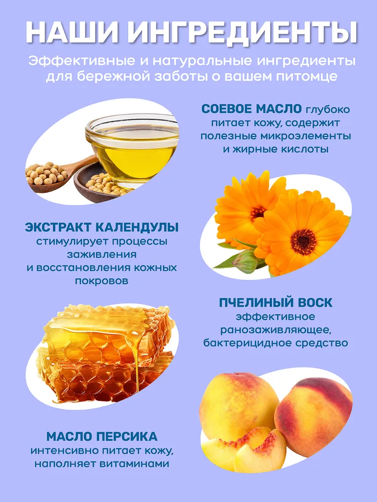 Зимой прогулки превращаются в настоящие испытания для чувствительных подушечек лап. Воск ZOORIK — это надёжная забота и комфорт на каждом шаге. Он образует прочную, но невидимую плёнку, защищающую кожу от агрессивных факторов: соли, льда, снега и низких температур.Натуральное персиковое масло глубоко питает, смягчает огрубевшие участки, восстанавливает естественную эластичность. Экстракт календулы обладает заживляющим действием, помогает уменьшить раздражения и покраснения после контакта с реагентами. Соевое масло и витамин E насыщают кожу полезными веществами, укрепляют её защитный барьер и делают её устойчивой к повреждениям.Синтетичный пчелиный воск создаёт прочный защитный слой, не мешая дыханию кожи и не стягивая лапы. Витамин A способствует регенерации, улучшая общее состояние кожи. Благодаря удобной текстуре, воск легко наносится, быстро распределяется и не оставляет следов.С ZOORIK ваш питомец больше не будет страдать от трещин, сухости и боли после зимних прогулок. Уверенные шаги, защита и комфорт — каждый день.Диаметр банки - 5,5 см.СПОСОБ ПРИМЕНЕНИЯ: перед прогулкой протереть лапки от пыли и грязи. Вложить лапку в баночку и провернуть баночку по подушечке лапы или нанести воск на руки, а потом на лапку животного. После прогулки помыть лапки, далее протереть насухо. Противопоказания: индивидуальная непереносимость компонентов. Только для наружного применения. Избегать попадания в глаза.E-COSMETIC – официальный поставщик ZOORIK.