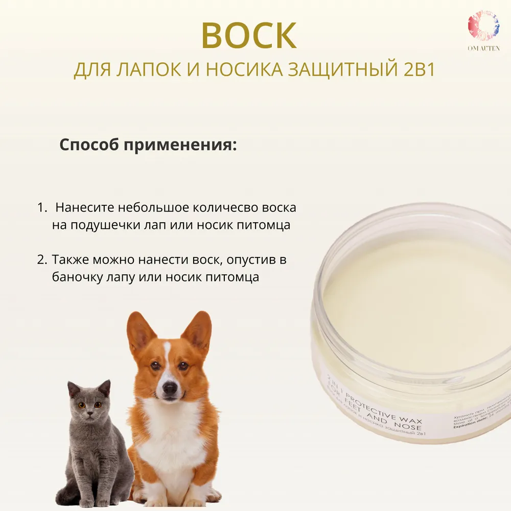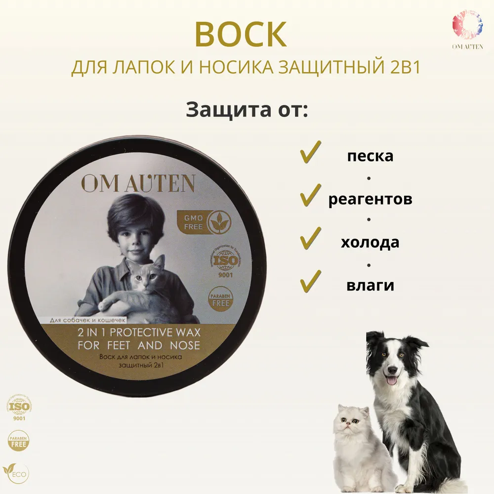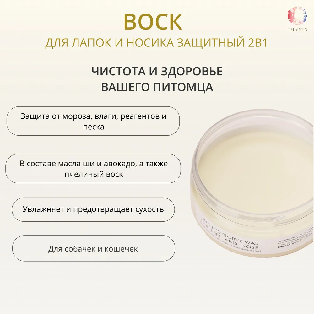 Благодаря своей натуральной формуле, воск безопасен для использования на коже питомца и не вызывает раздражение или аллергические реакции.Воск для лапок и носика 2в1 является эффективным средством для защиты вашего питомца в зимний период. Он поможет уменьшить воздействие противогололедных реагентов, предотвратит травмирование от льда, песка, гравия и обезопасит от обморожения. Регулярное использование воска поможет сохранить здоровье и комфорт вашего питомца в холодное время года.Линейка средств OMAUTEN по уходу за питомцами